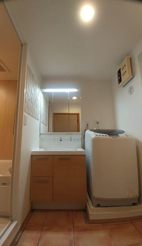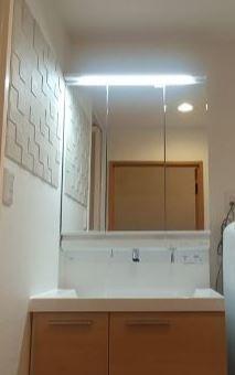 洗濯パンも60センチではなく64センチの標準の物も入り、洗面も75センチで下に扉が付いたので収納力もあがりました。