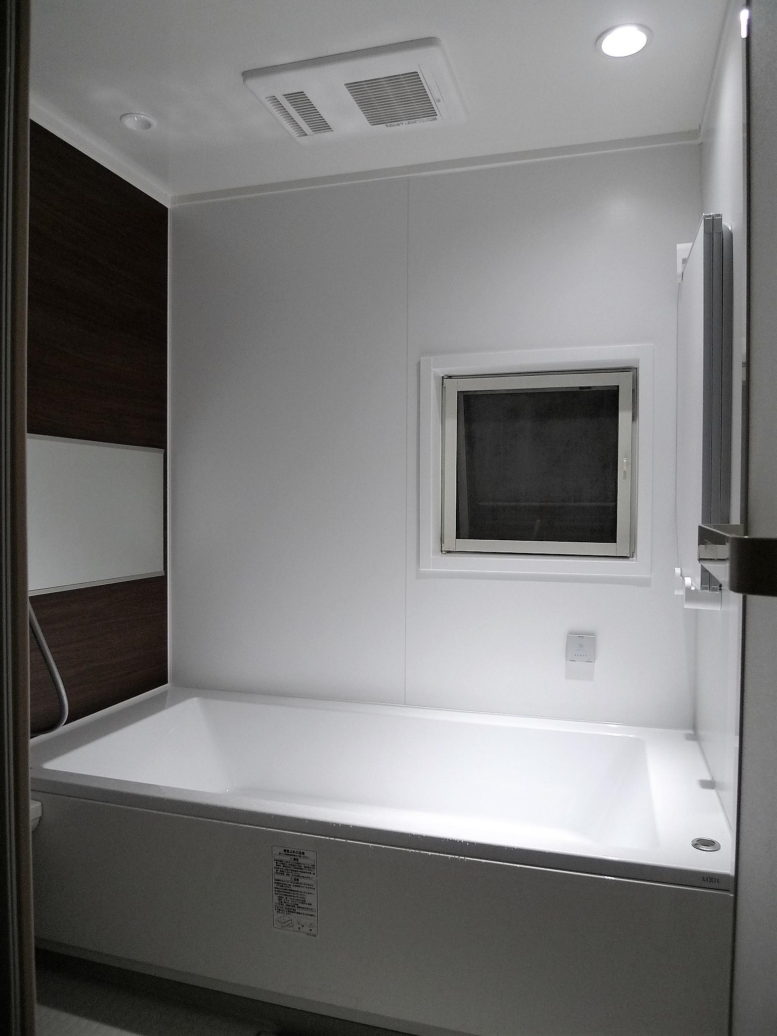お風呂のこだわりは、浴室内でのスマホの操作・読書をする為の照明をオプションにて追加させて頂きました。読書灯の明かりが夜になると幻想的な空間へと変化させ、さらに日頃の疲れを癒せる空間を作り出すことが出来たと思います。