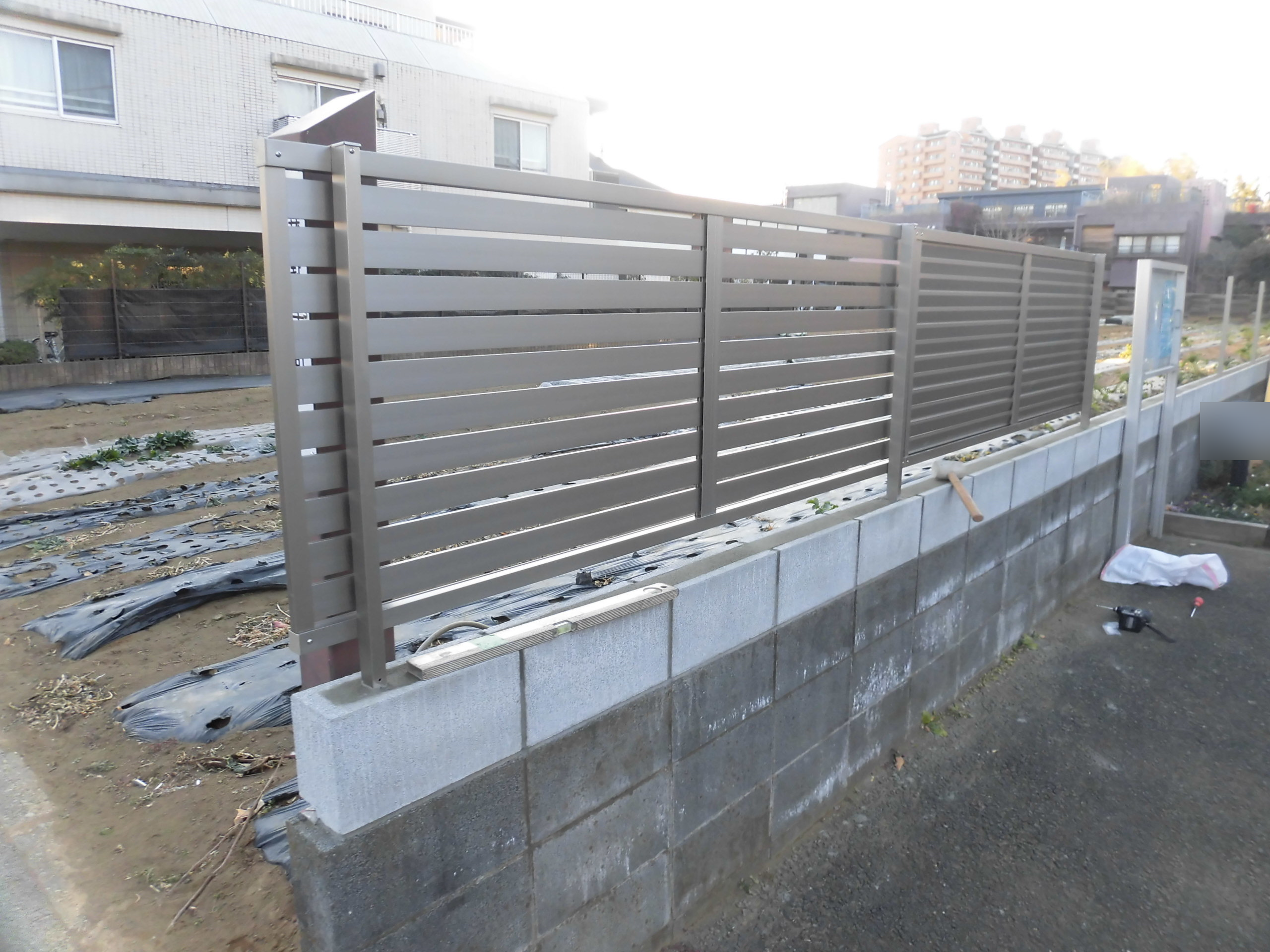 フェンス交換設置工事。 既存のフェンスの傷みがあり、フェンスの交換になりました。 交換するフェンスのご選定商品では、ルーバータイプが基本に、スリットタイプを部分的に混合をし施工致しました。