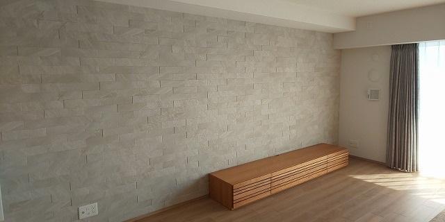 リビングをこだわりのくつろぎ空間にする為にエコカラットを検討されていました。ショールームで概算見積もりを聞いた時はLD一壁面(全面)、書斎一壁面(全面)、玄関一部を施工するのは厳しいと思われていたそうです。実際、マンションのオプション提案だとその概算金額になってしまいますが・・・。そこは地元密着型の我が『ハウズ』です。他業者のマージンを含めないのでリーズナブルで密な打ち合わせで対応させていただきました。当初はダークグレー??とかもっとこまかいの??とかで悩まれていました。建具や床の色目、ご希望のイメージやこれからの住まい方を確認し、ながく飽きが出ず、他内装を変えた時にも合わせやすいタイプをご提案させていただきました。サンプル取寄やイメージパース作成の甲斐ありとてもお喜びいただける仕上りになりました。