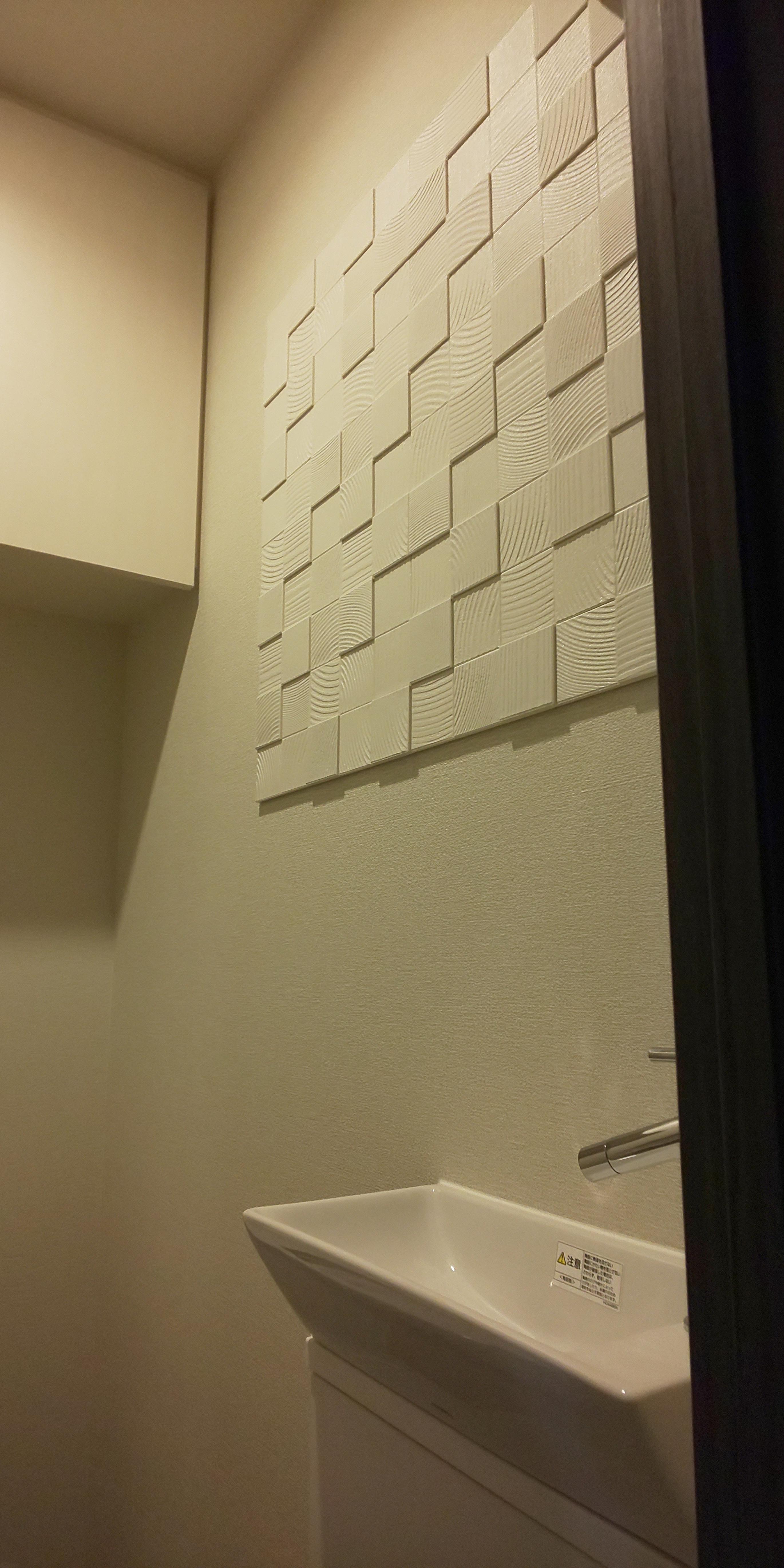 新築マンション購入時のエコカラット工事になります。ショールームでエコカラットを見て、家の購入時には是非我が家に♪とお考えになっていたそうです。いざ施工するとなったらどこにお願いしたらいいのだろうと??マンションの内覧業者?近くの業者?でもマンションオプションは高いし、今の住まいと離れている新居近くの業者評判はわからないし・・・と。そんな経緯でショールーム経由で我が社をご紹介いただき、打ち合わせの結果信頼を勝ち得、当社で施工と相成りました。さて今回の施工もしっかりと頑張りますか(・ω・)ノ