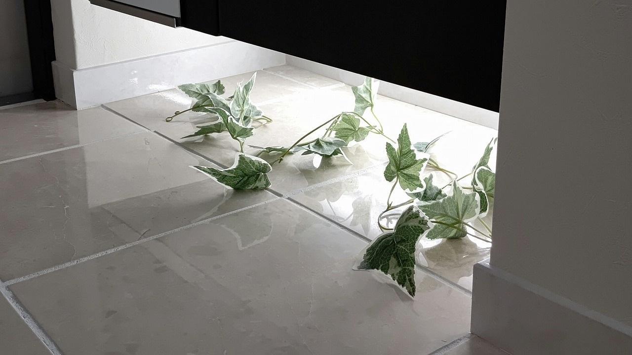 玄関収納はフロート設置にて対応しました。空間を設ける事で間接照明も設置出来ますし、靴の収納場所とても利用出来ます。間接照明は壁スイッチで熱感知式の人感センサタイプになっています。暗い夜に帰って来ても、体温で反応し、足元を柔らかく照らしてくれます。ここはトイレの裏のスペースで、ここも浴室・洗面・トイレ空間の制約を受け寸法設計はえらく大変でした(-_-;)この玄関収納はW800で半分は背の高い収納で鏡扉で身だしなみを、そして扉裏に傘収納を設け玄関空間を少しでも大きく使えるようにプランしました。もう半分は上部と下部収納の間に空間を設けましたので小物類の置場や配達の方が来た際のハンコ捺し場にもなります。・パナソニック:ベリティスシリーズW800・パナソニック:勝手にスイッチ(人感センサスイッチ)・オーデリック:収納下部ライン照明