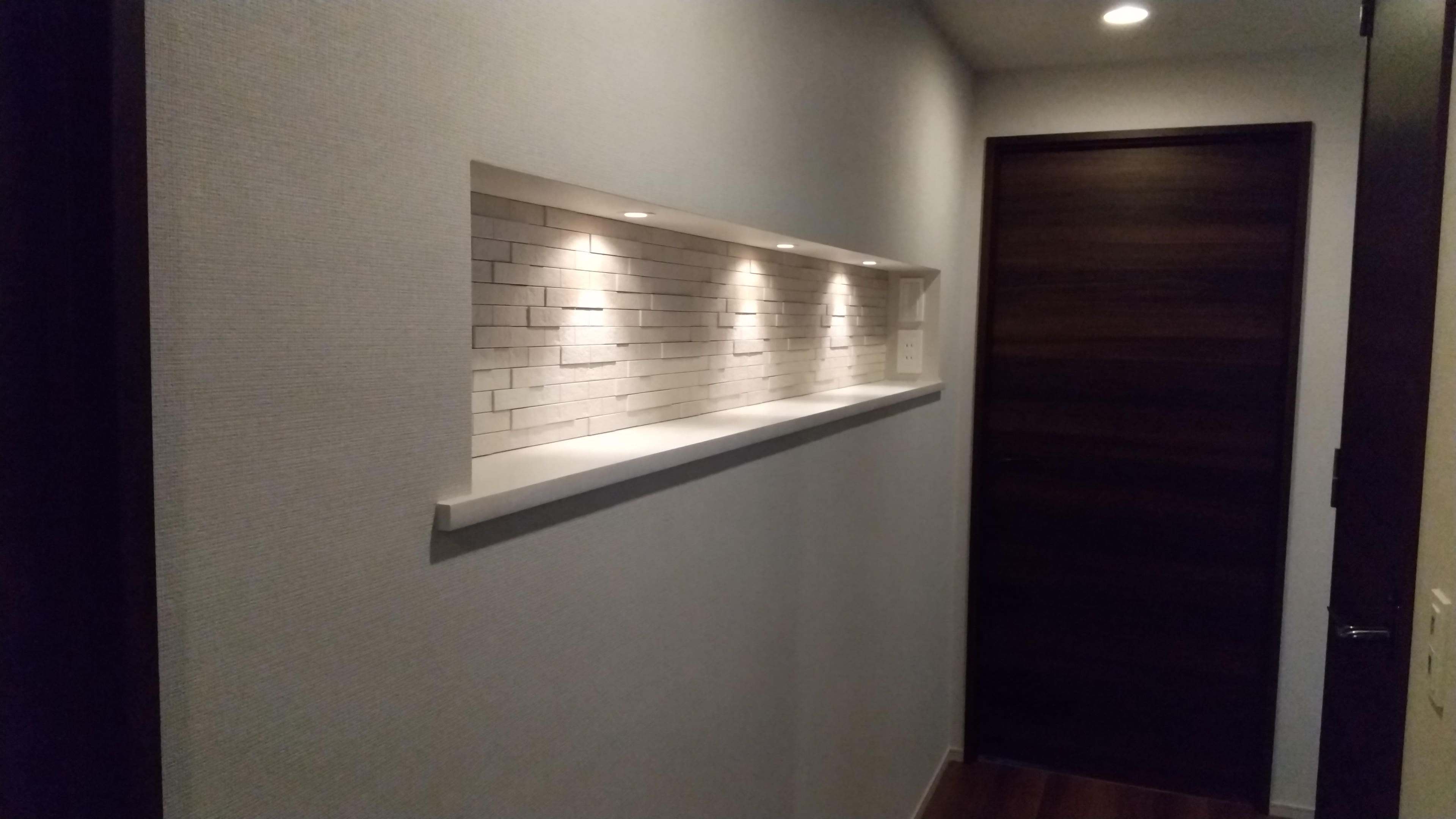 下足入がクローゼットタイプで、飾り棚もなく、ちょっとした小物置きが無いことから、ニッチをご提案しました。
