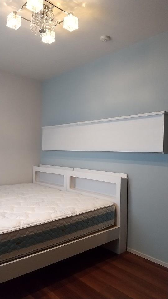 マンションの壁厚は薄いので、裏側の壁側に押し出す格好になり、寝室側に納めました。