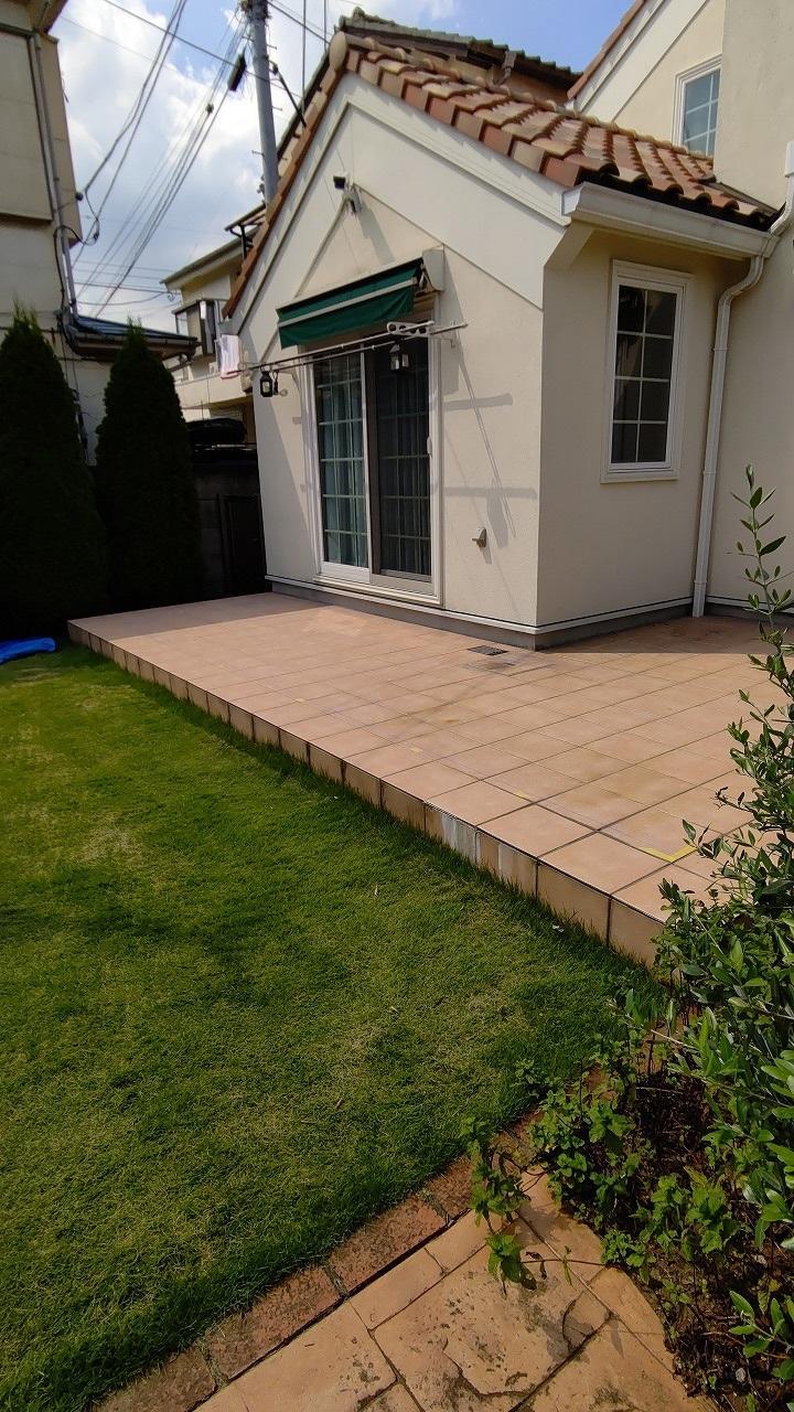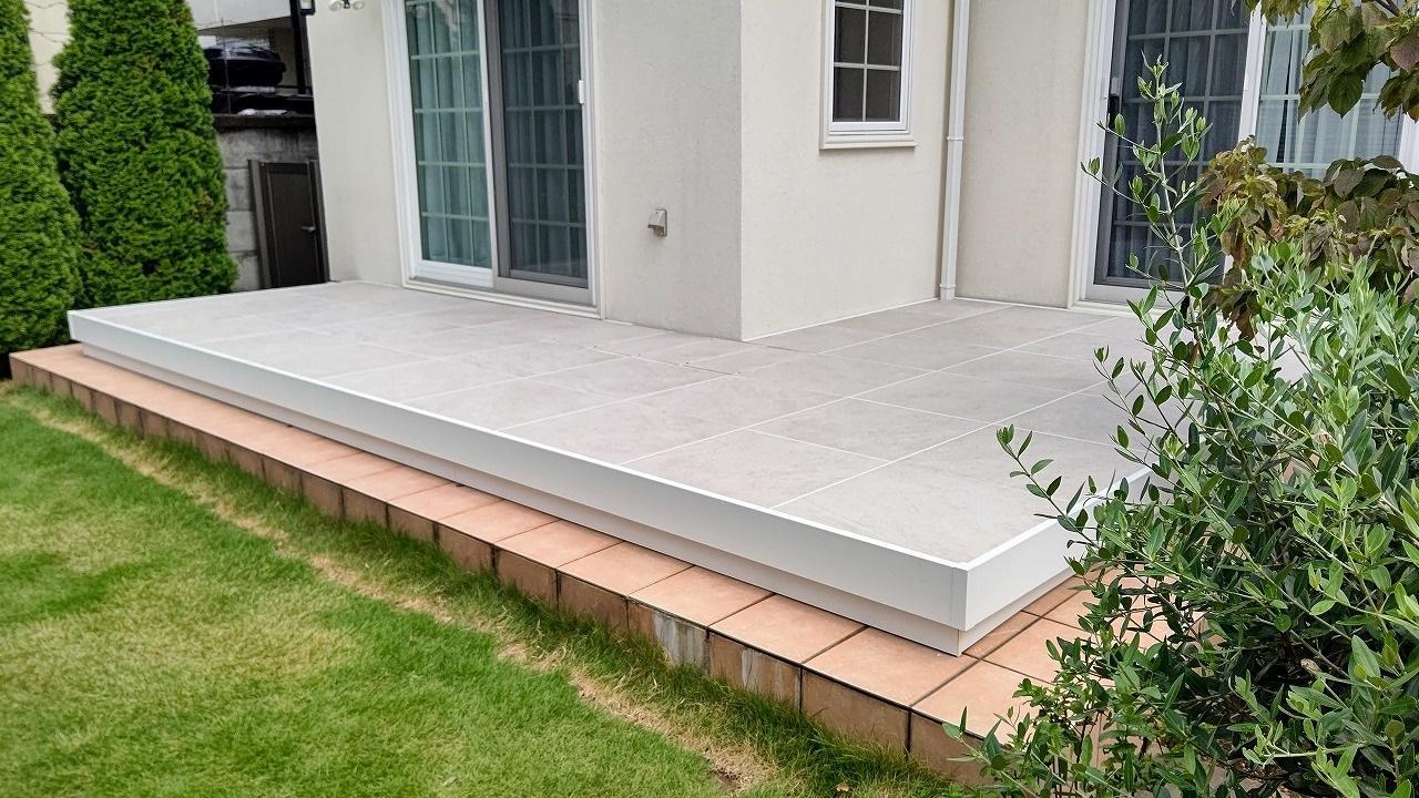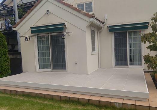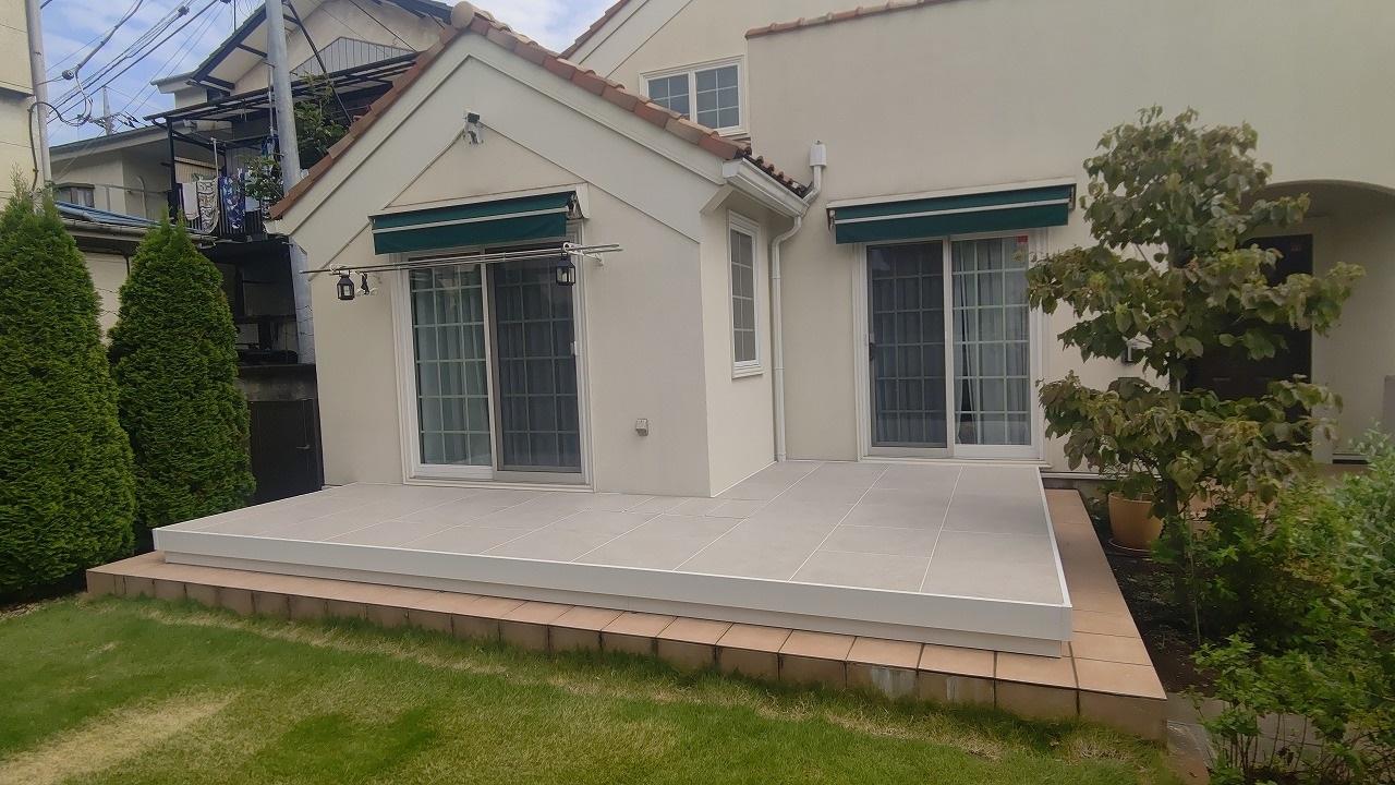 すでにタイルデッキはありましたが、LDの床ベースからは一段落ちたレベルの為、家中と外との出入りの際に不便を感じられていたそうです。それとリビングからの床のつながりで広さも感じたいという要望もあり、今回の施工へと繋がりました。