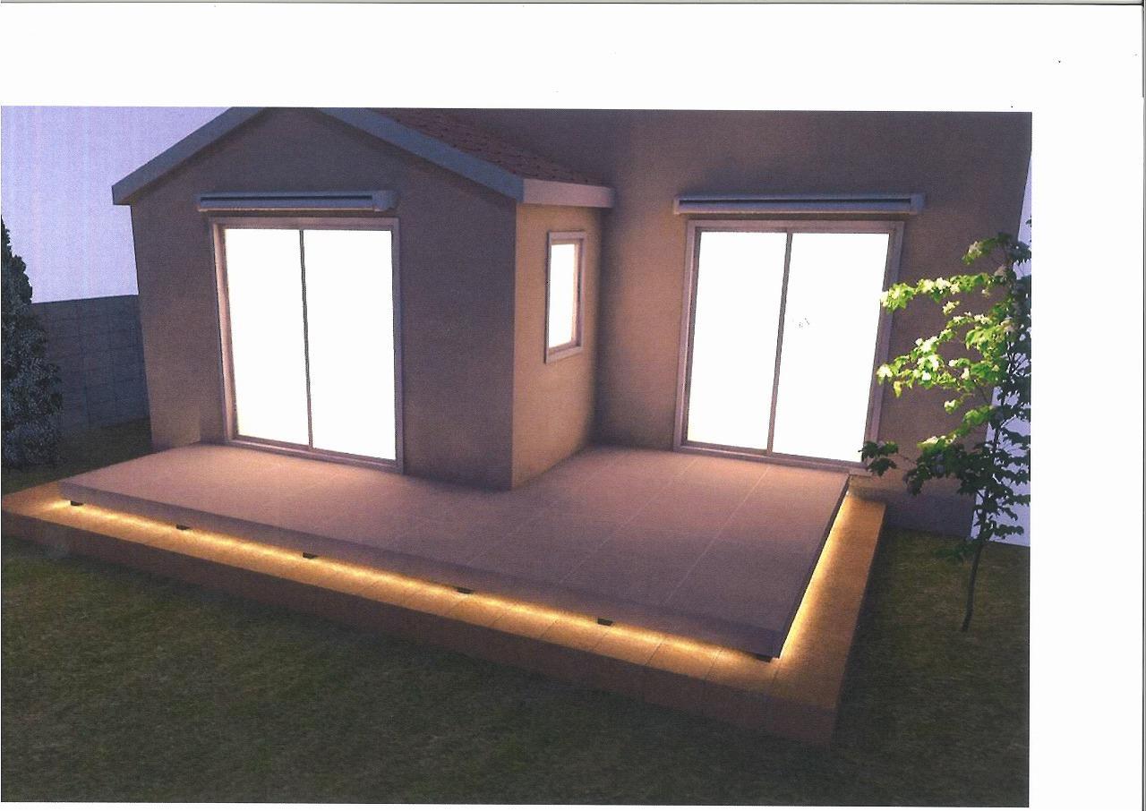 家の中の床はグレーベージュ(アッシュ系)の木質フローリングと一部アイボリー系の磁器製タイルで仕上げられています。外部を元と同じテラコッタ風で仕上げるのもありかと思いましたが、今回は家中からの延長と考え、外部は色が変わりますがホワイト系のタイルデッキに。重要な『どうなるか?』をパースでイメージを作成して確認していただきました。そこからO様と打ち合わせを重ね今回工事に踏み切りました。