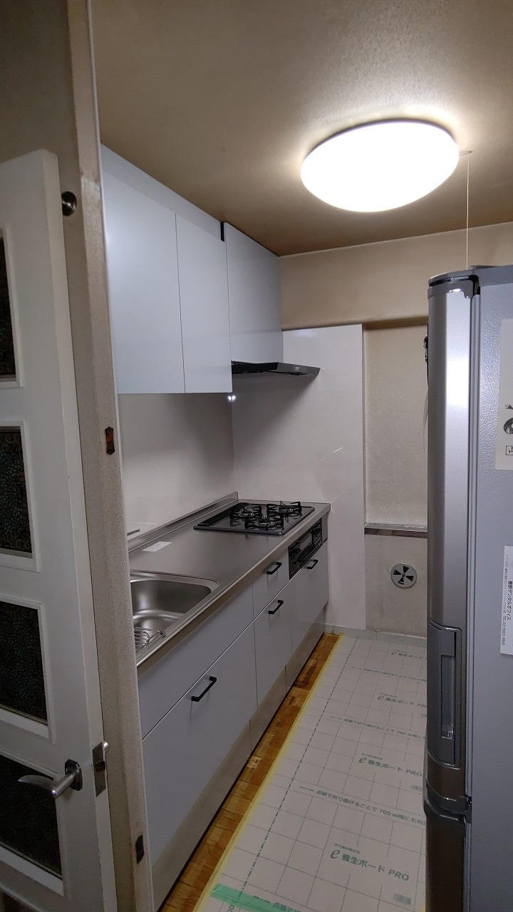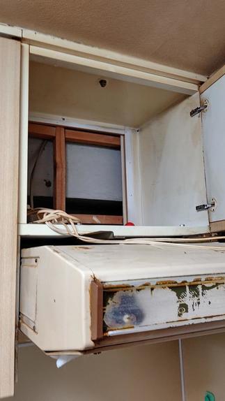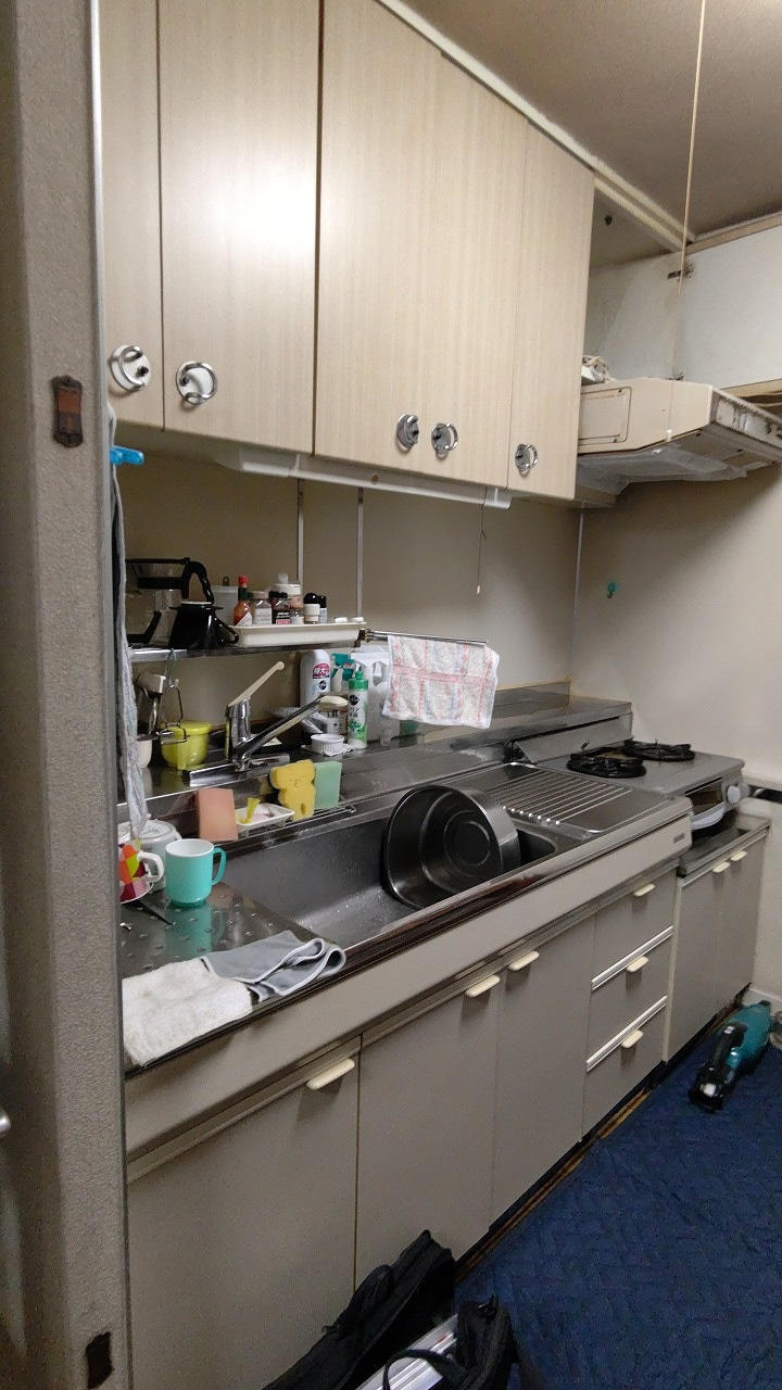 現場調査に伺ったところ、換気扇だけの交換をするには納まり方が特殊でかなり難しそうです。吊戸もガタきているので一緒に合わせてという話もありました。さらに換気扇は今どきのお手入れしやすい方がいいなと。ただそのタイプの換気扇を取付するとなると排気ダクトの接続問題が出ます。後壁の造作も考えないといけません。そこまでするなら下台を中途半端に残さないで交換検討していただいた上で背面壁の造作した方がいいなとなり、年数経っていた下台部分も合わせて交換の提案をしました。
