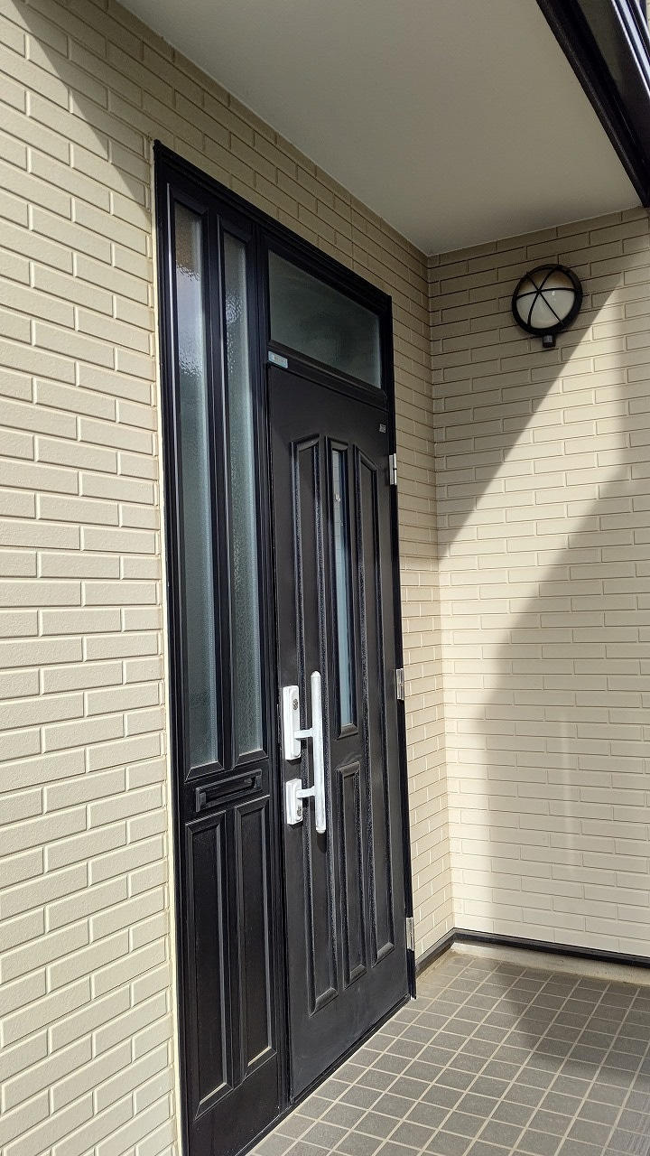 外壁施工に合わせての交換と外壁を絡めない玄関ドアのみの交換の2パターンあります。前者は総額での金額はかかりますがドア部分だけの金額は抑えられます。後者の場合はドア部分の金額はかかりますがその工事のみで交換を終えられます。そういった事を踏まえた上、お客様の要望や現況を考えながら計画を進めていきます。今回は外壁までは考えていませんでしたので後者のパターンで行います。