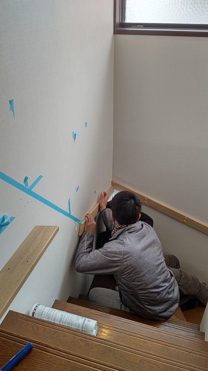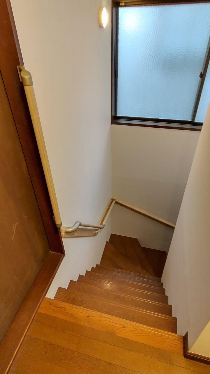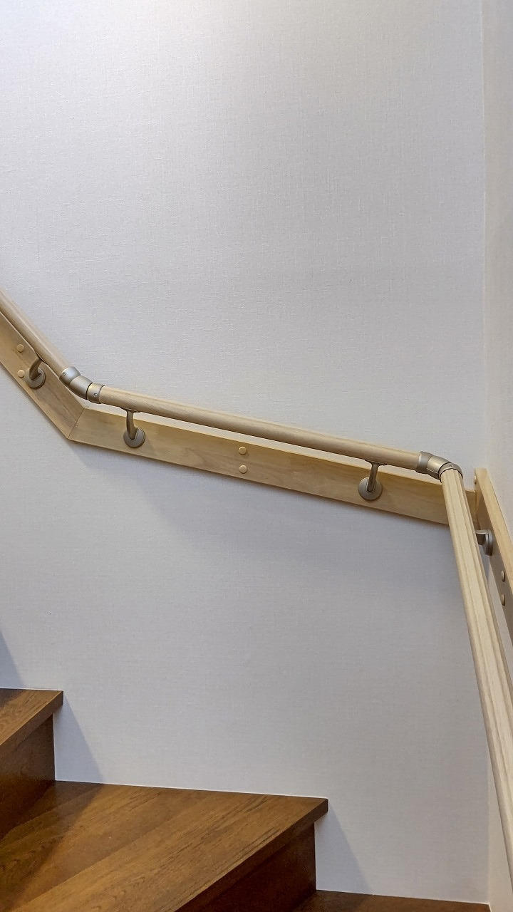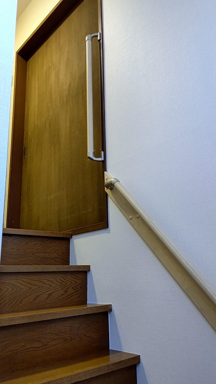 階段は家庭内事故で転落などで重大な事故につながる危険が多い場所です。今では建築基準法で設置が義務付けられていますが平成12年の法改正以前はなくともOKでした。大体築年数25年くらいが境かと思いますが、今回はそんな住宅の階段手摺を設置しました。