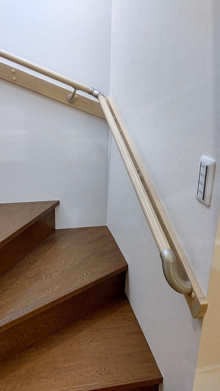 手摺を付けた事で安全面は大分向上したと思います。私も取付後に階段上り下り確認しましたが全然違います。2階からの降り始めの急な部分はあると本当に安心です。