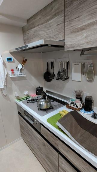 キッチンパネルはメーカー別取りでシンコールのマグネットパネルを選定しました。ベージュ系色はメーカーオプションでは対応出来なかった為、このような対応をさせていただきました。