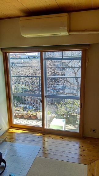内窓の窓枠は既存の窓枠に近い色で部屋に合うニュートラルウッドG色にて。