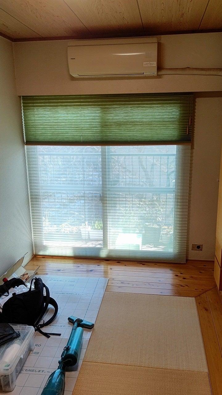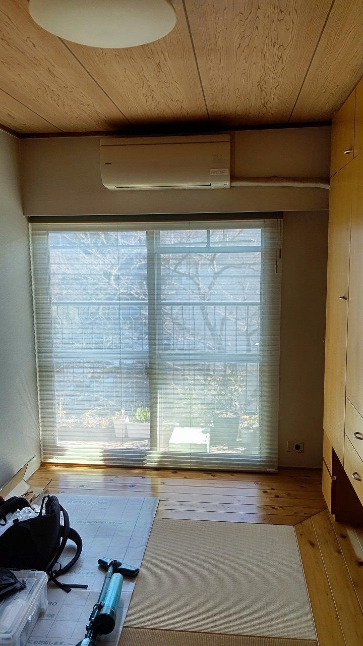 そんな条件下で提案させていただいたのは、和風の造りのお部屋でしたので、和紙調の生地を選択出来る和モダンに対応可能なプリーツスクリーンです。