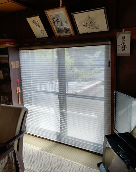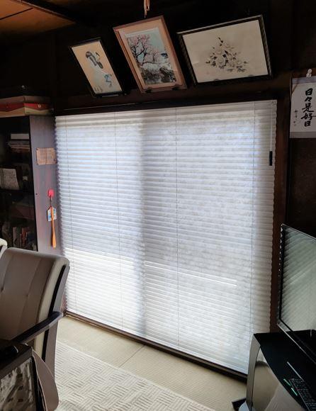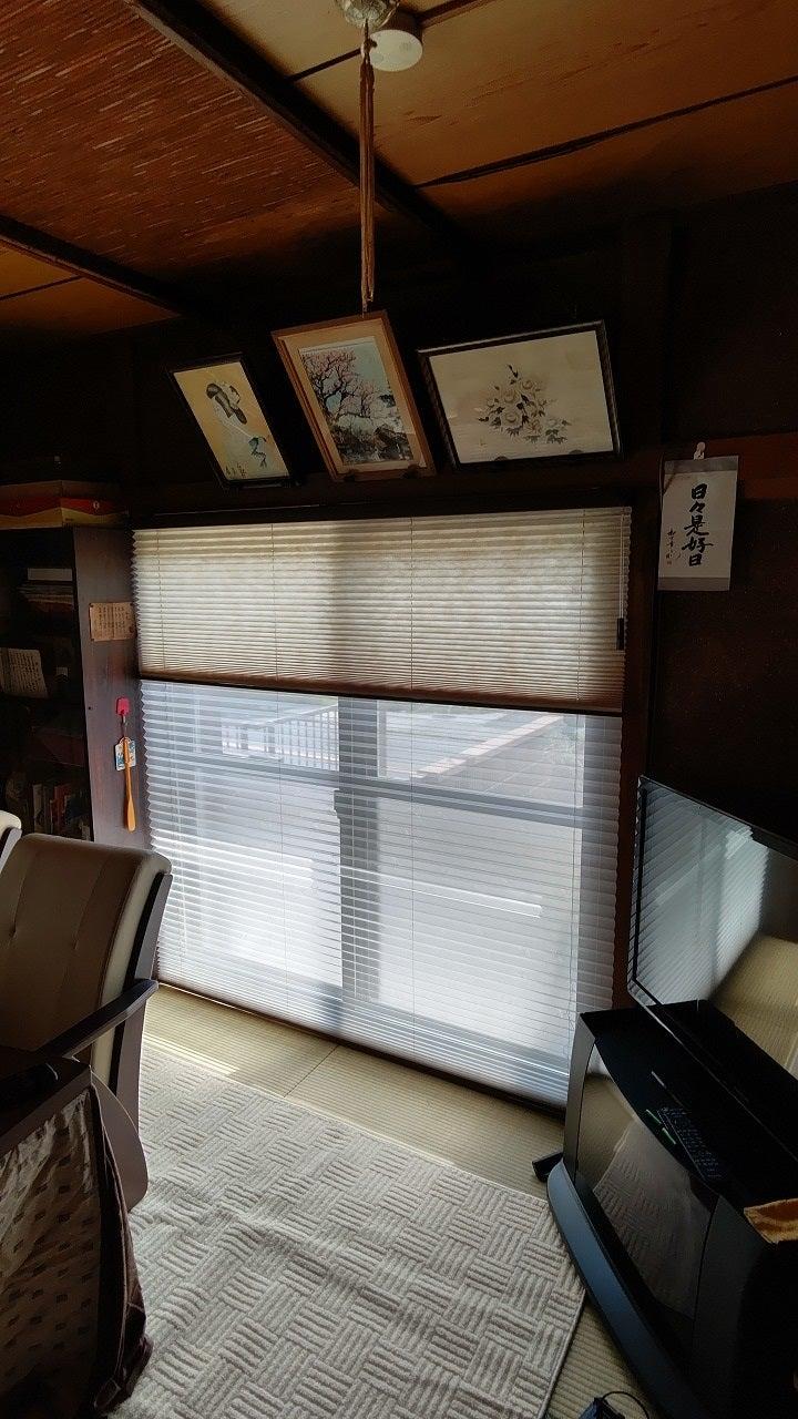 内窓を設置すると障子を外さないといけなくなってしまうので、プリーツスクリーンも一緒に設置させていただきました。