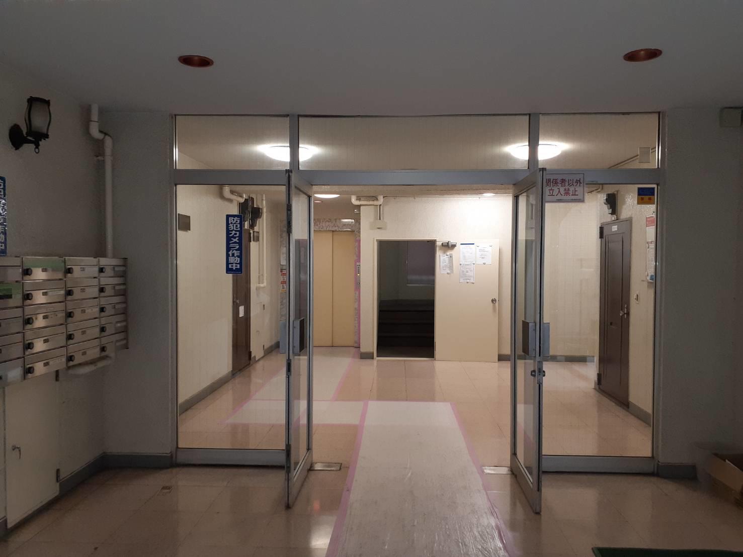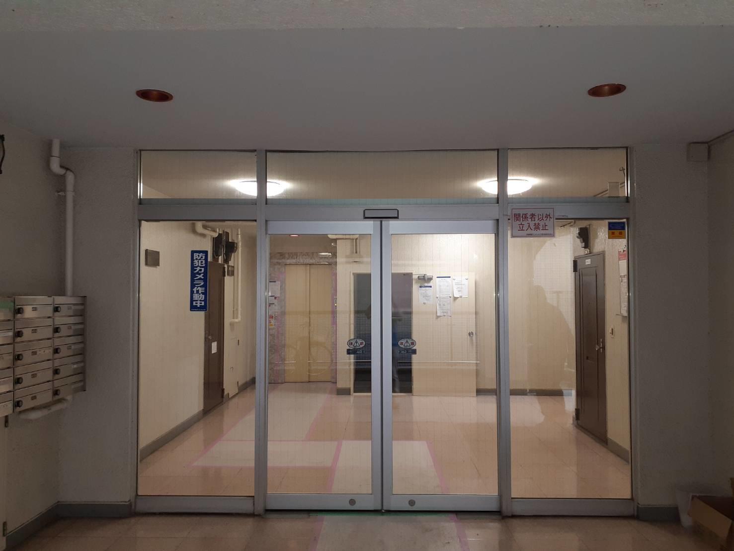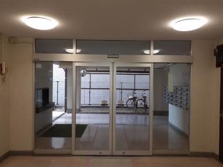 居住者の方々の高齢化もあり、入口ドアを開き扉から自動ドアに交換したいとのことで、工事をさせていただきました。