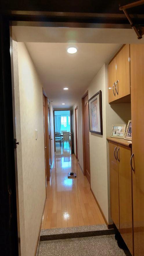 玄関及び廊下は、照明と内装施工を行いました。あと何故か無かったコンセントを真ん中あたりに増設しました。今回はコンセント設置だけでなく夜&非常時のライト対策も兼ねた足元ライト設置可能コンセントにしました。これで就寝時に余分な灯りを点けなくても廊下を安心して歩けます。あと玄関照明は熱感知式のスイッチと連動させました。これで帰宅時に手がふさがっていても自動点灯するので安心で使い勝手向上です。