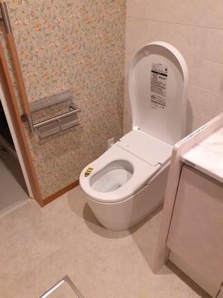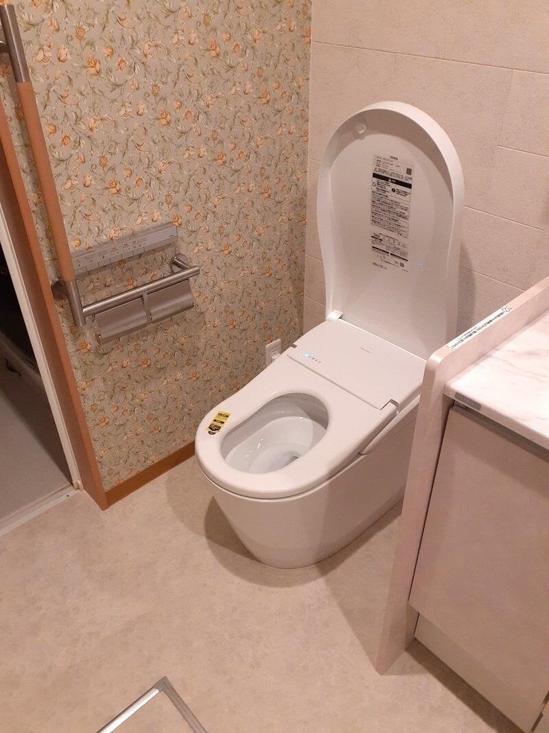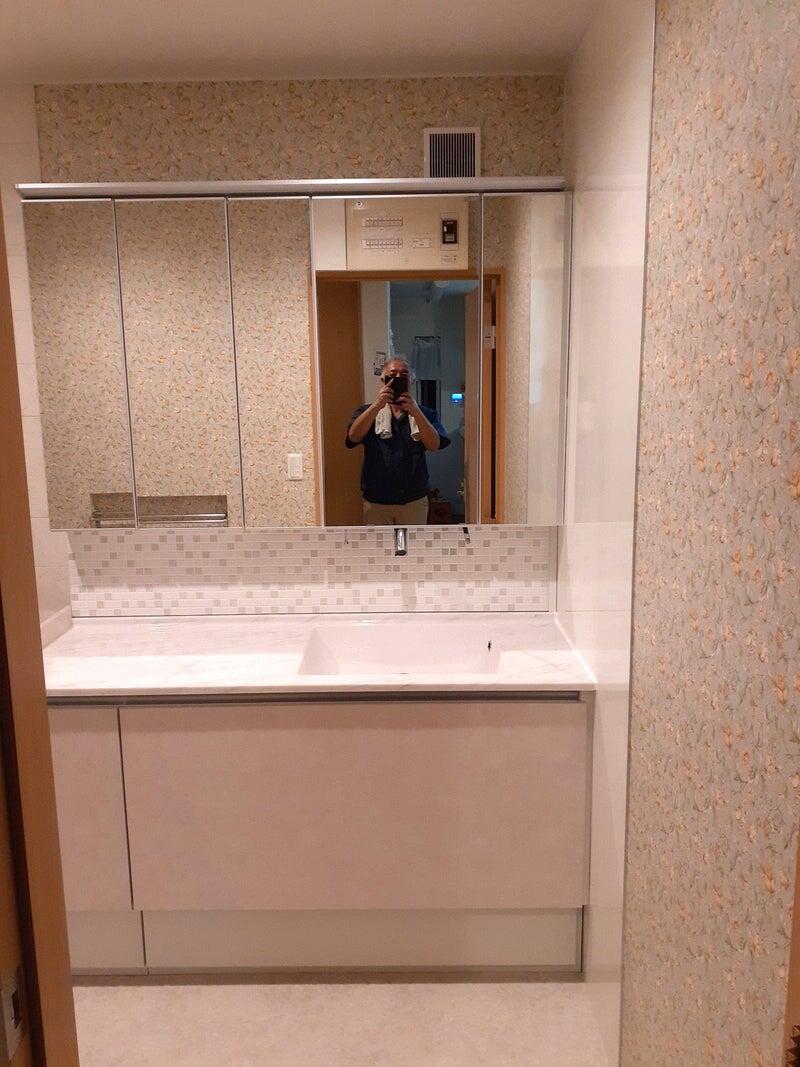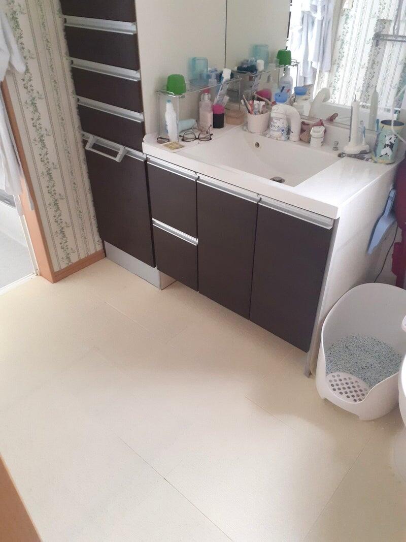 洗面所・トイレの空間リフォームです。 施工前は入口ドアの正面がトイレでしたが、より落ち着く場所にするために配置を入れ替えました。 洗面化粧台はLIXILルミシスを選定、トイレ背面にはLIXILエコカラットプラスのレイヤーミックスを貼りました。 素敵になった上に使い勝手も良くなり、大変喜んでいただけました。