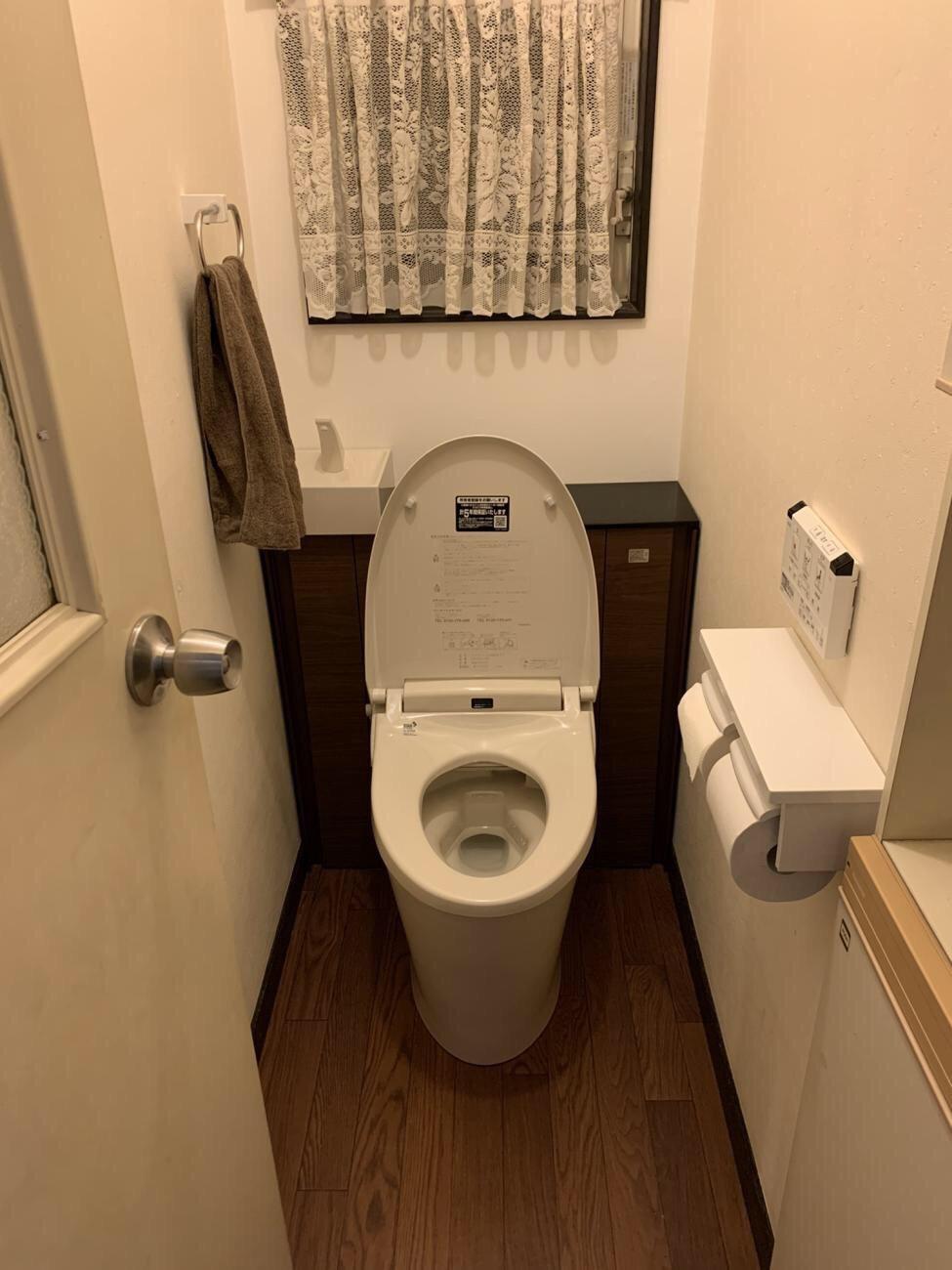 フローリングの床が傷んでしまったのをきっかけにトイレリフォームをご検討されました。 奥様は元々のフローリングがお気に召していらっしゃったので、近い色でフローリングタイプのCFをご提案しました。むき出しだった配管がなくなり、手洗い付きですっきりとした新しいトイレはお子さんたちも大のお気に入りスポットになったとのことで、嬉しく思います。 商品名 リフォレ