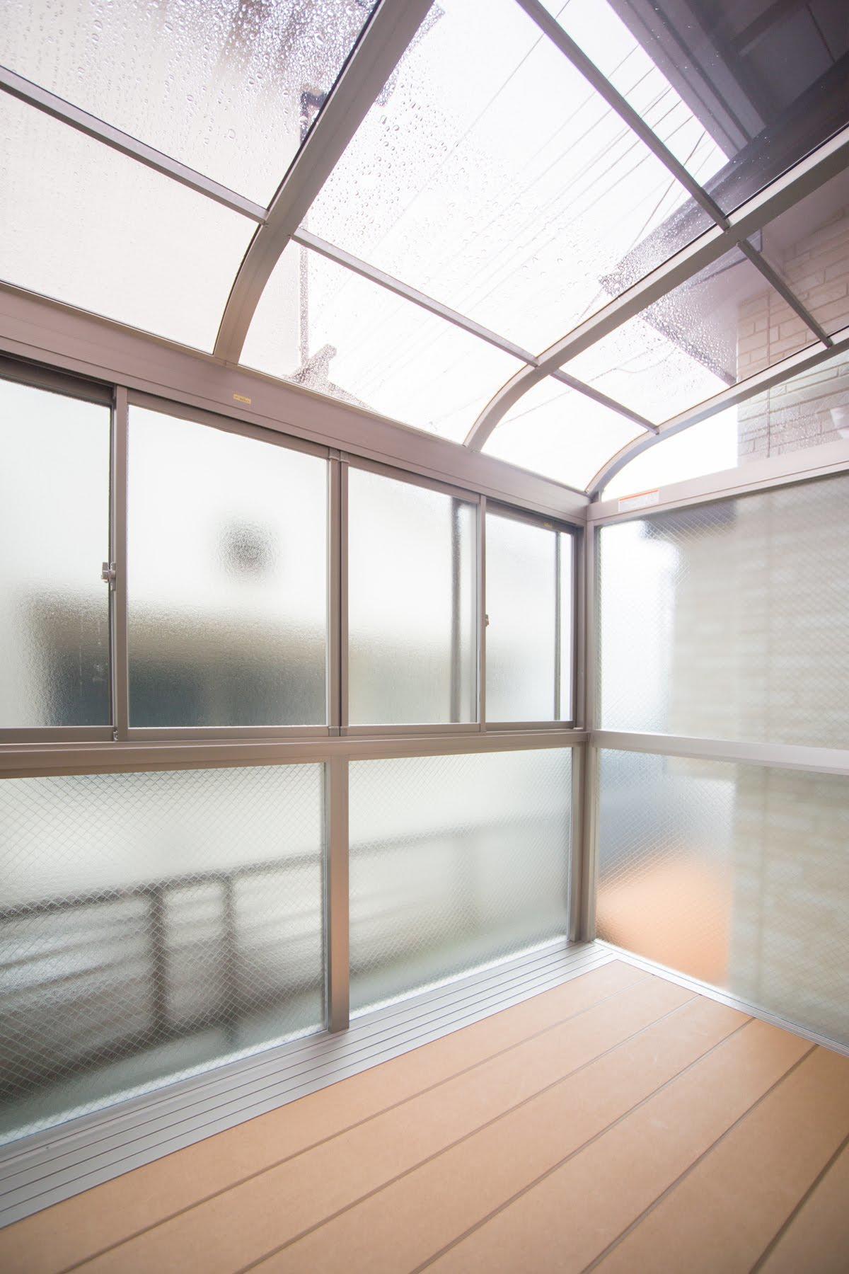 リビングから出入りできるサンルーム【サニージュ】には光が差し込みます。お天気を気にせずお洗濯できますね。