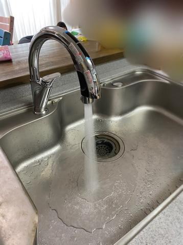 水栓レバーが壊れてしまったのでお取替えご希望。できれば浄水ビルトインで、水栓を一つにしてスッキリしたいとのことでしたのでご希望通りの仕上がりにご満足していただけました。 ディスポーザー用の電源がシンク下にあったため、電気工事なしで設置することができ数時間の工事でした。 今までレバーに手が届かなかった小さなお子様も使いやすくなったそうです。これで手洗いも安心ですね。