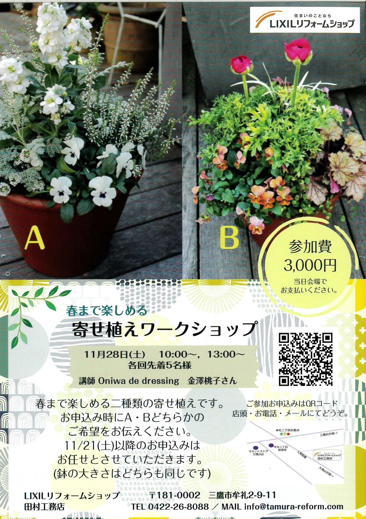 春まで楽しめる寄せ植えを作ります。お花の組み合わせを2種類ご用意しましたので、お好きな方をお選びいただけます。