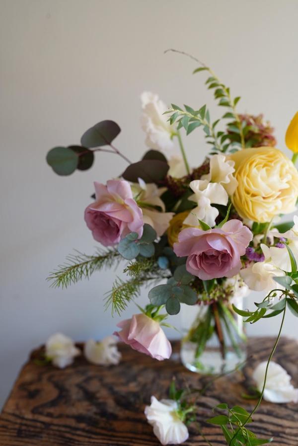ouvrir が市場でセレクトした新鮮な春のお花を使って、ロマンティックな