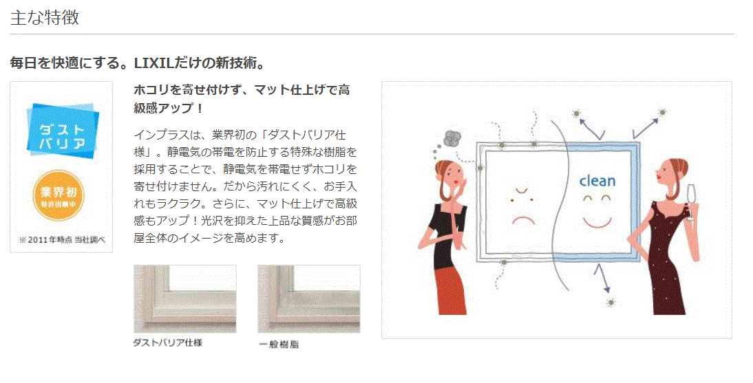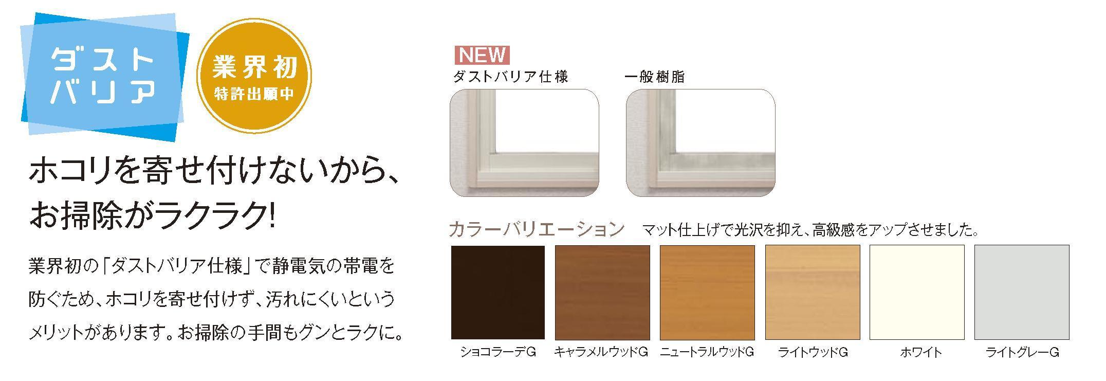 ダストバリア仕様で、この時期に気になる帯電を防止する特殊な樹脂を採用することで、静電気を帯電せずホコリを寄せ付けません。