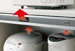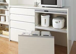 収納力もばつぐんで、炊飯器や、下にゴミ箱を格納できたりすることができます。