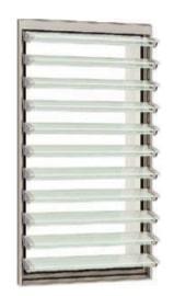 ハンドル操作により、ガラスの羽根が開閉する換気・通風に便利な窓です。