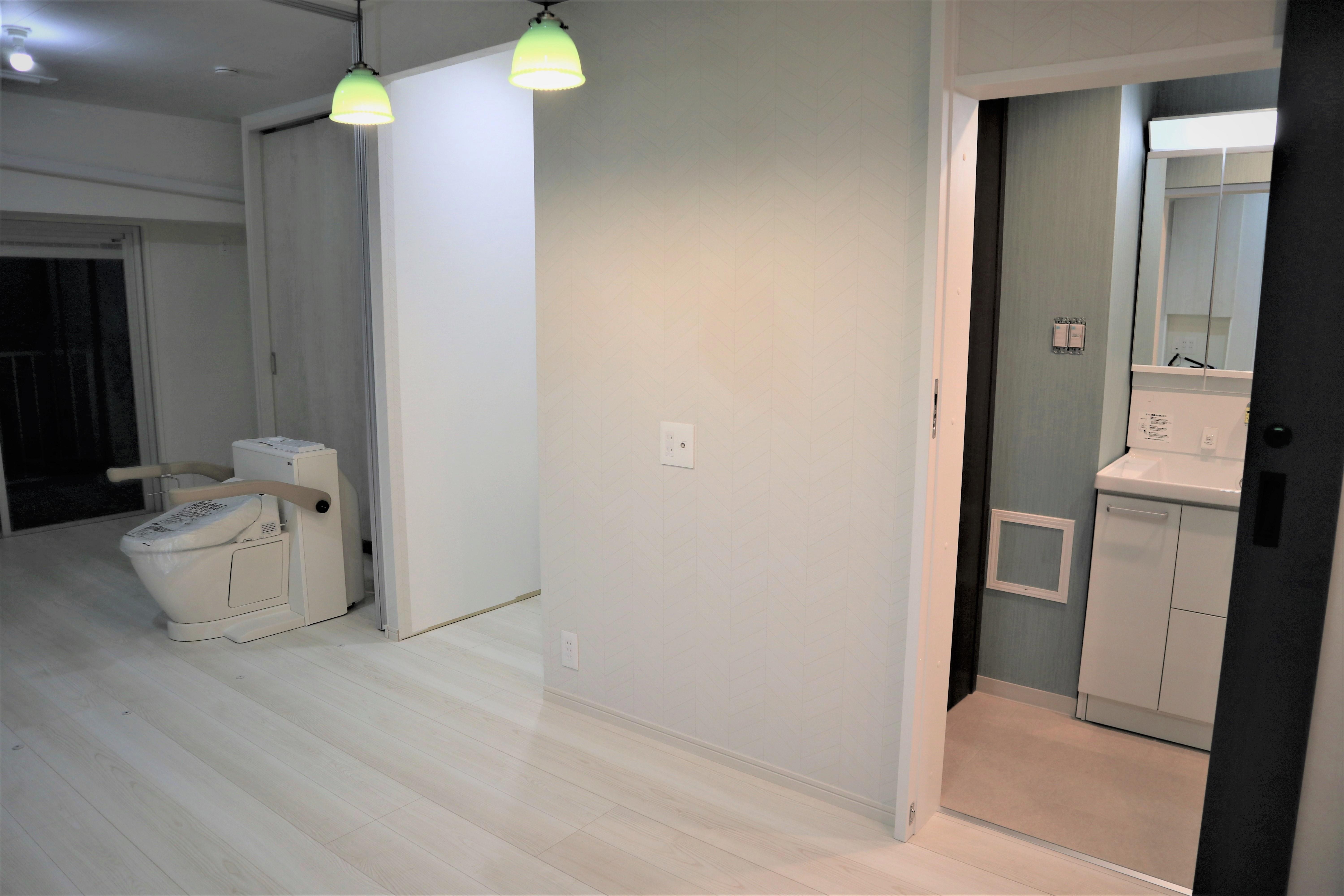 奥に見えるトイレ、こちらもバリアフリー化のポイントです!