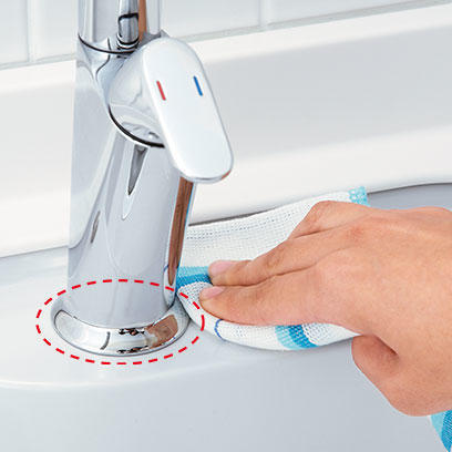 POINT②お掃除楽々台座で水栓下部のお掃除も簡単!![]()