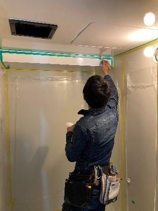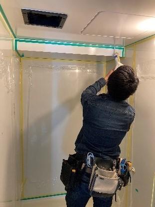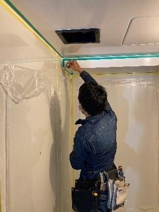 写真のように、丁寧にマスキングテープで養生をしていきます。