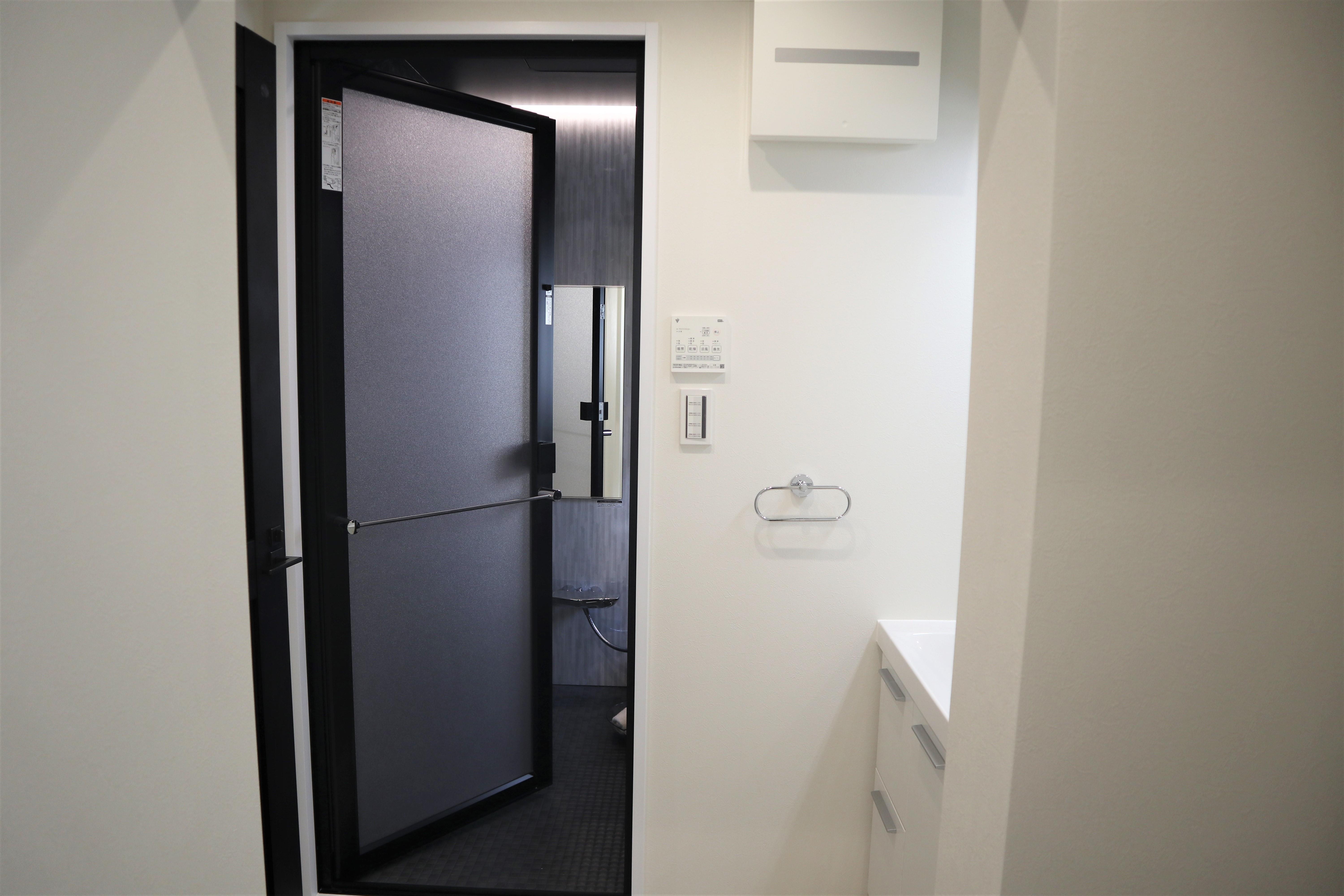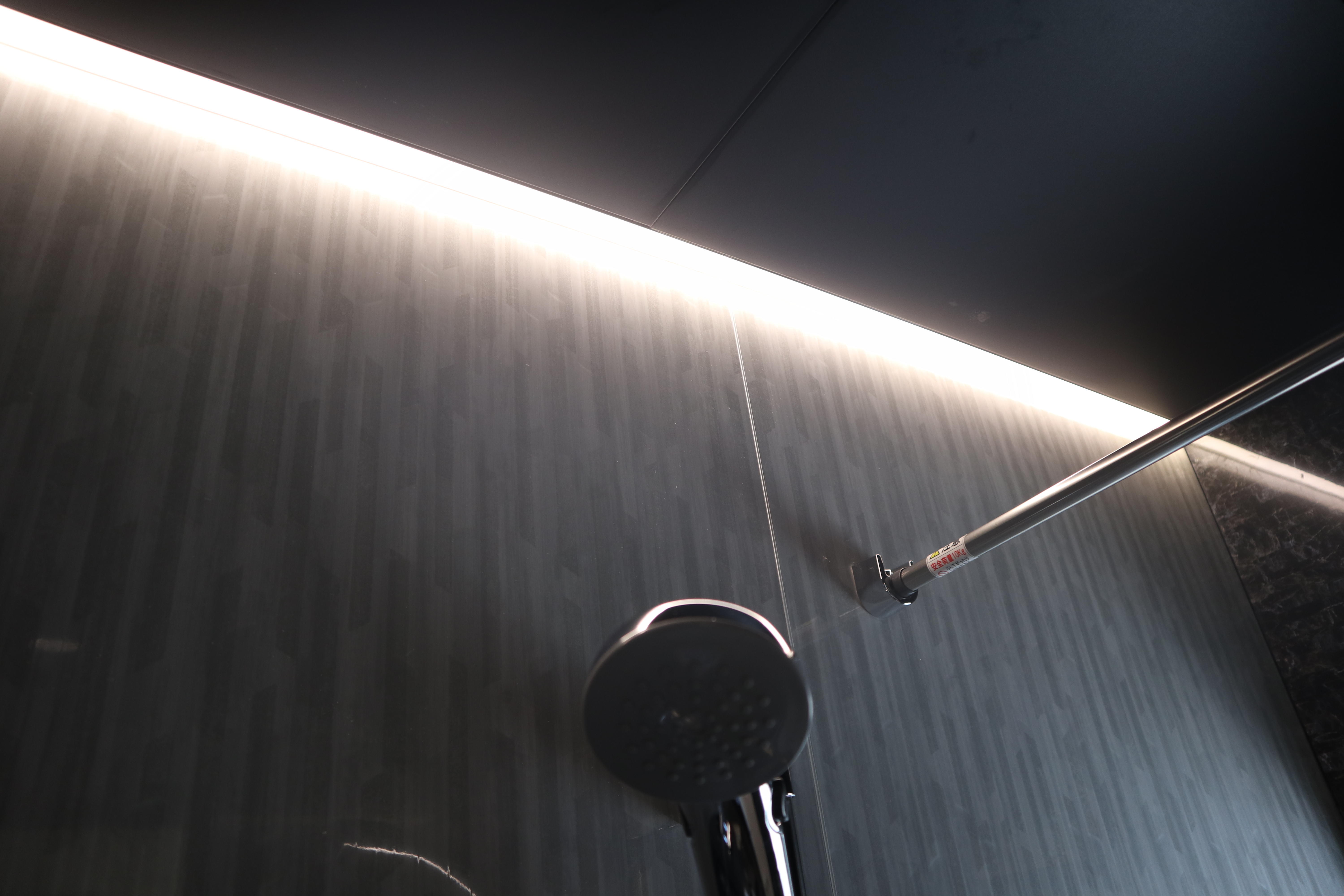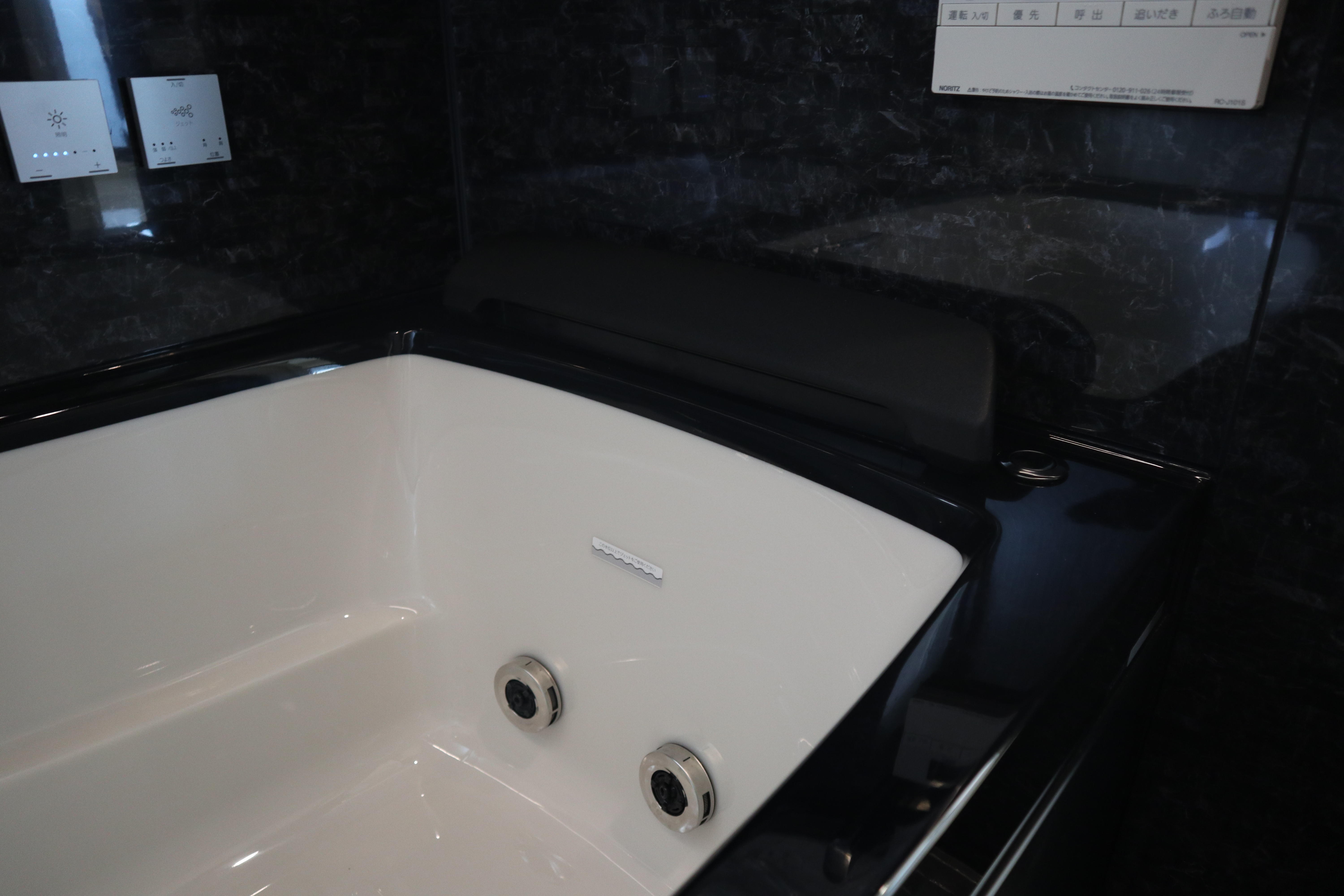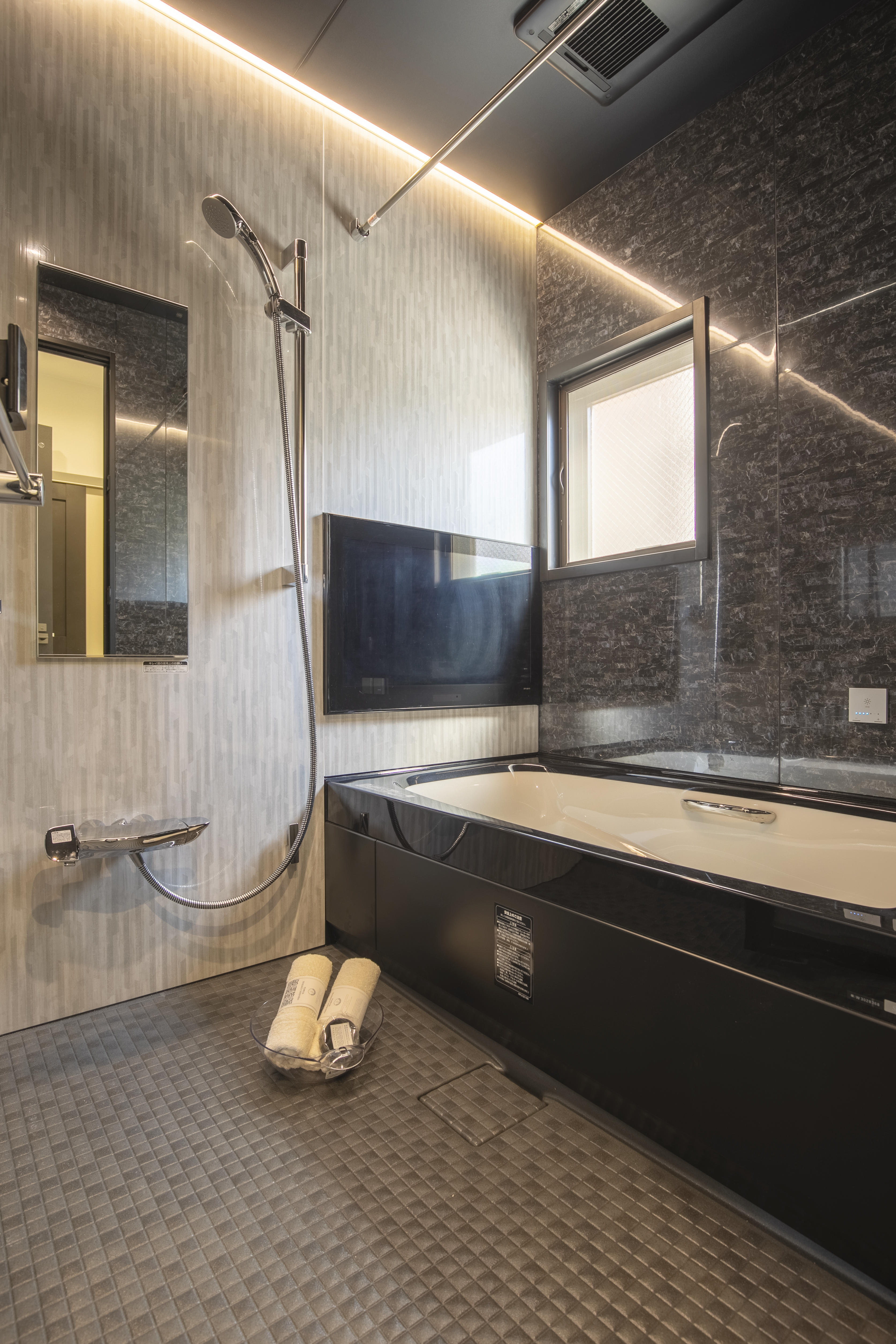 全体の色を黒でまとめて"かっこいいお風呂"になりました。