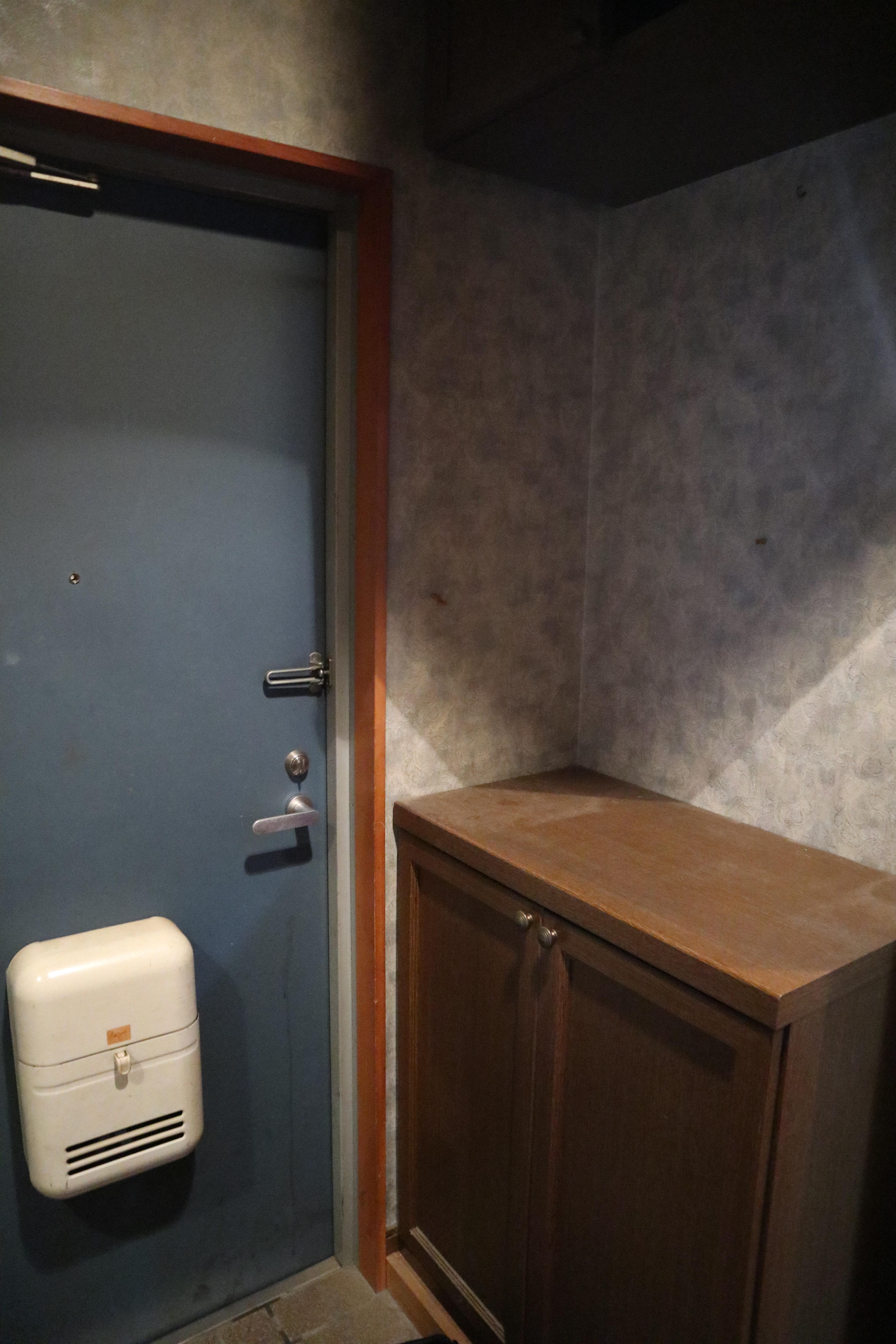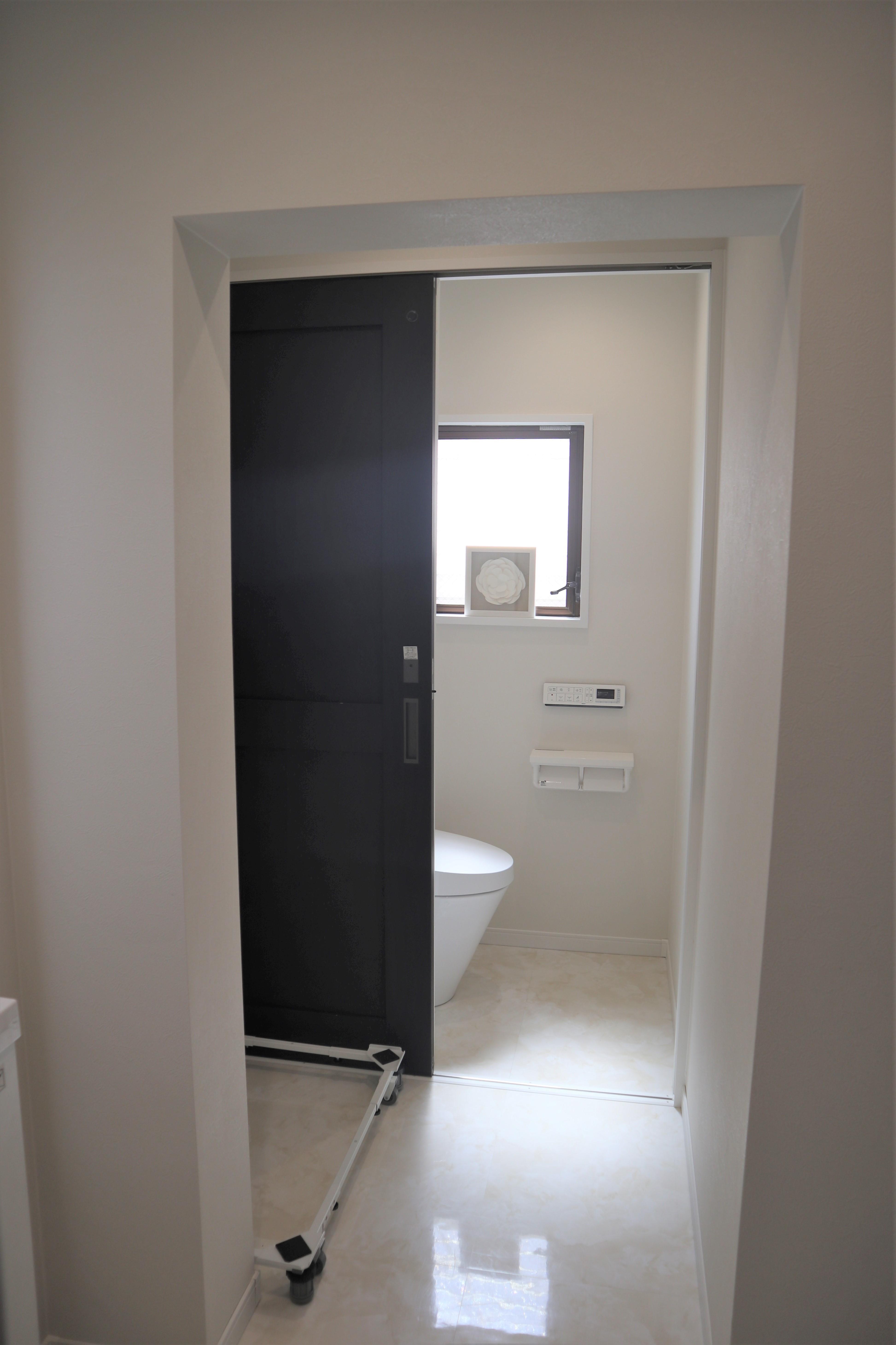 元々浴室があった場所にトイレが移動したので、ドアの外から見ると...