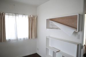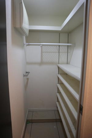 玄関横のこちらのスペース、右側に5段の棚板と枕棚がL型に設置されていました!