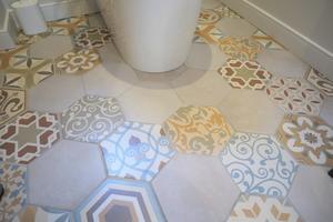 タイルのデザインはポルトガルのアズレージョ柄です。