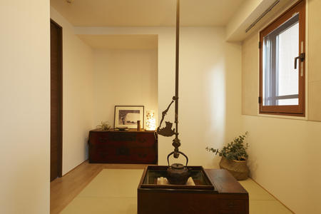 囲炉裏も置いてジャパニーズモダンな空間となりました。