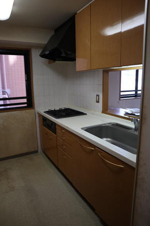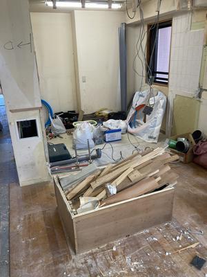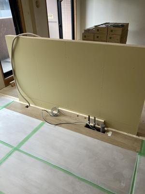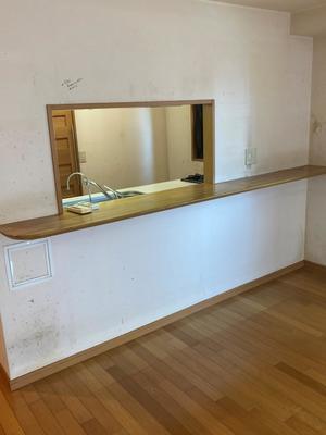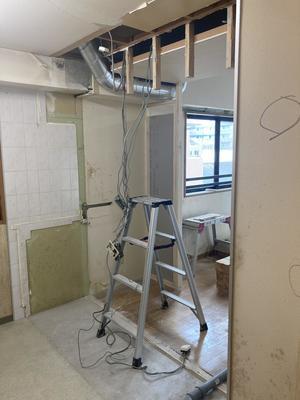 キッチンの換気扇のダクトや給排水管をリビング側に引っ張ります☟