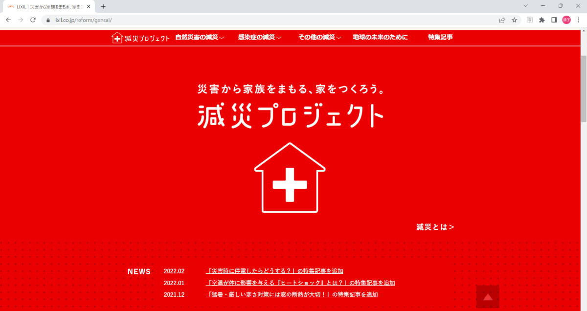 LIXILでは、台風や地震以外にも、感染症、猛暑など、さまざまな災害への対策についてまとめた「LIXILの減災プロジェクトページ」を公開しています。お家の防災対策について知りたい方や、これからリフォームをされるご予定の方はぜひチェックしてみてくださいね。