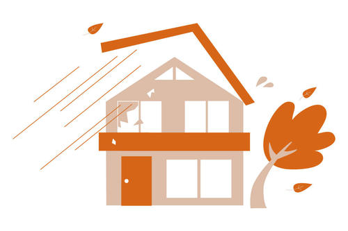大型台風が上陸して、風速20m/s以上の暴風が発生すると、看板や瓦、植木鉢などが吹き飛ばされて、飛来物が窓を割ってしまう、なんていう事態も。
