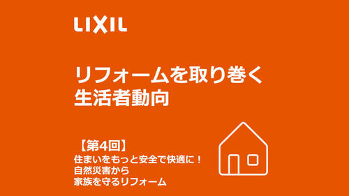 そのような状況のなか、LIXILがシリーズで公表しているレポート「リフォームを取り巻く生活者動向」の第4回が先日公開されました。テーマはまさにタイムリーな「自然災害から家族を守るリフォーム」。