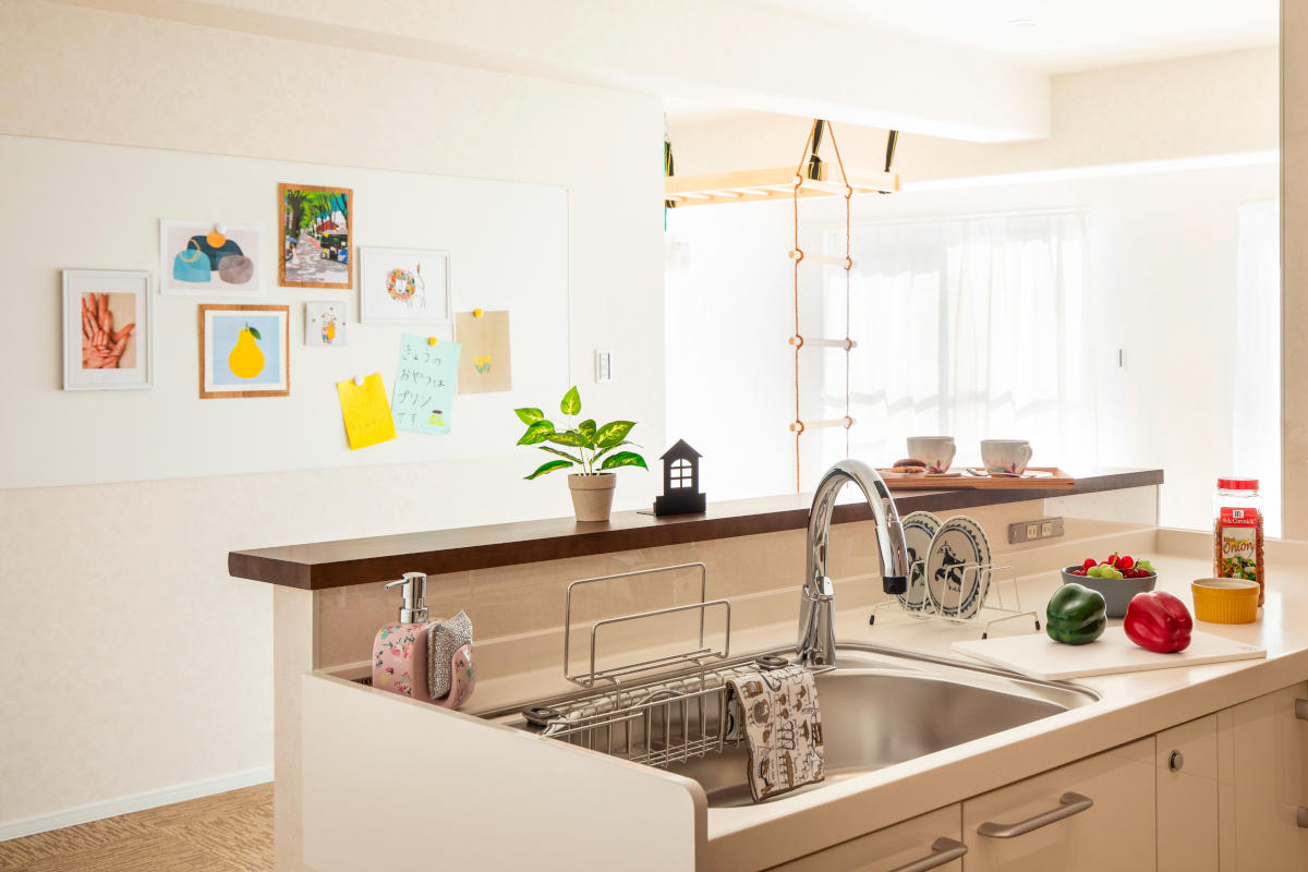 また、「アクセントボード」にお玉やフライ返しなどのキッチン用具をかけられるフックや調味料を置いておける棚を設置すれば、毎日のお料理も効率UPできそうですね♪