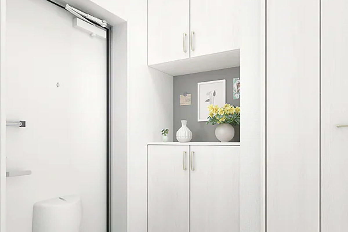 人の往来が激しい玄関や、スペースがあまり確保できないトイレは、物がゴチャつきがちなわりに、収納家具を置きづらいという難点が。