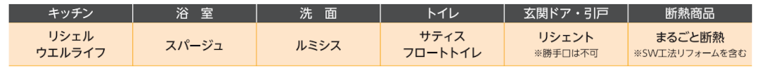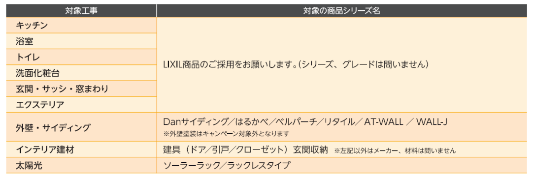【条件③】に加え、リフォームされる対象工事すべてにおいて、下記の【LIXIL対象商品シリーズ】をご採用いただくこと