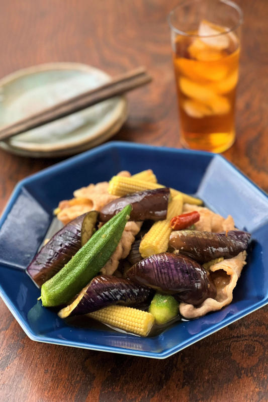 今回は7月号の「かんたんレシピ」のコーナーから、「豚肉と夏野菜の煮びたし」のレシピをお届けします。