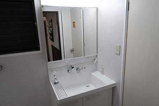 洗面化粧台はLIXIL製『ピアラ』を設置。収納スペースも増えスッキリと物が収まるようになりました。
