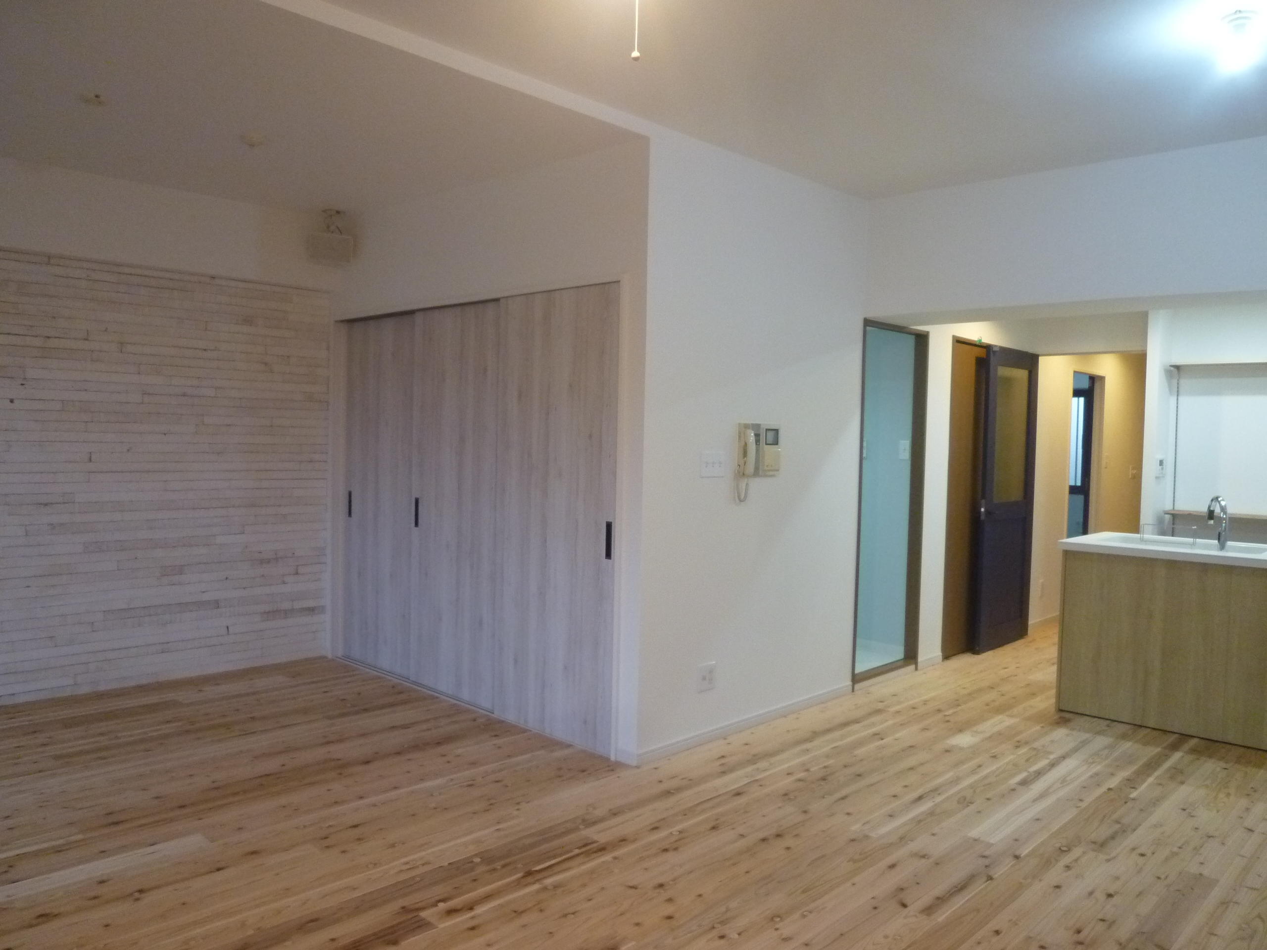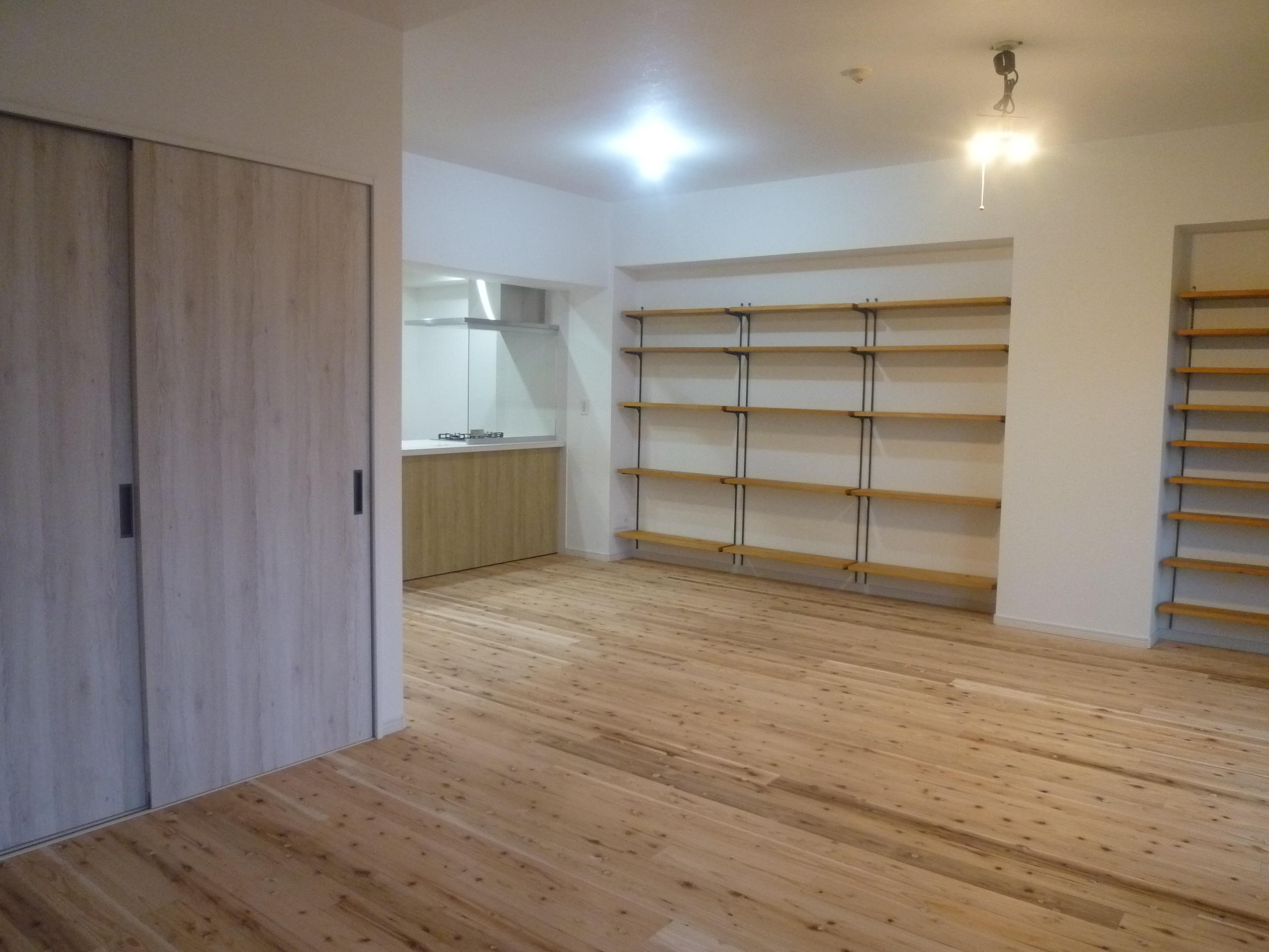 建具はLIXIL製ラシッサ(ホワイトオーク)、壁一面に音楽コーナーとしてラックを設置致しました。BOSEのスピーカーを取付、ターンテーブル等置く予定だそうです。素敵なお部屋です。
