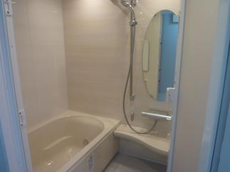 浴室はLIXIL製リノビオV(Sシリーズ)楕円のミラーもお洒落です。