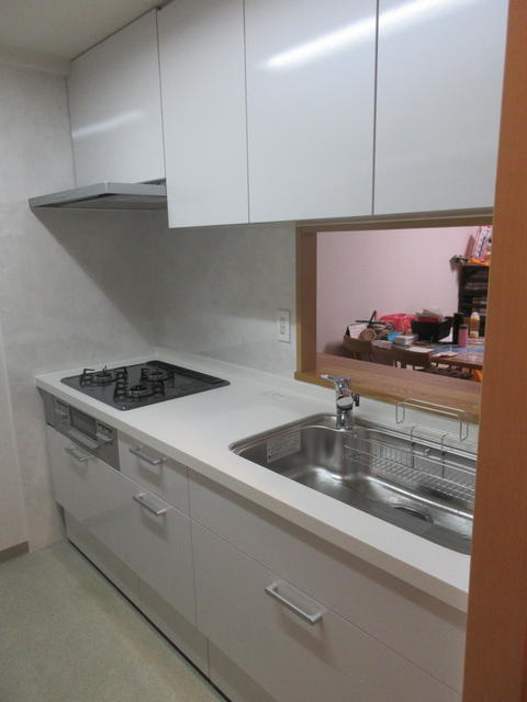 ガスレンジ廻りのタイル汚れを気にされておりました。キッチンパネルに貼り替え拭き取りしやすくなり、収納もたっぷりな万能キッチンです!