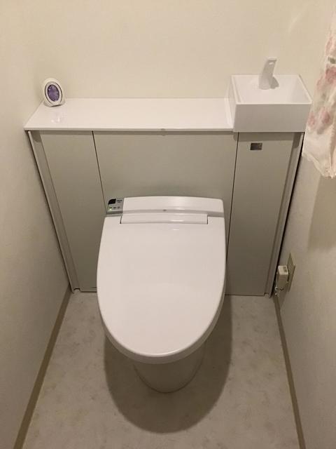 すっきり収納付のトイレで外に出ていたものも収納でき、お掃除もしやすくなりました